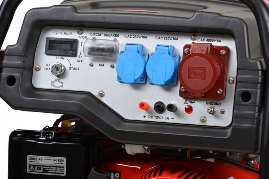 • Generator wyposażony jest w rozrusznik elektryczny, więc rozruch odbywa się poprzez przekręcenie kluczyka w stacyjce, podobnie jak w samochodzie. W przypadku np. wyczerpania się akumulatora jest również możliwość ręcznego uruchomienia za pomocą cięgła