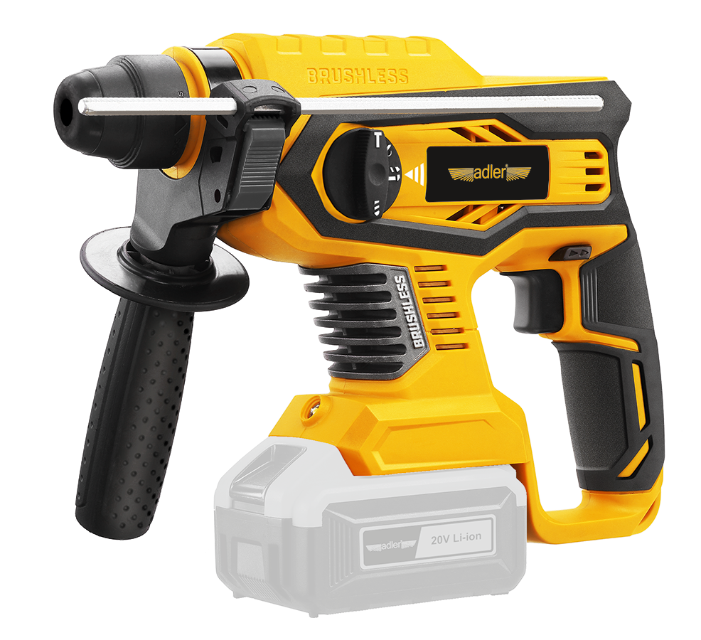 Akumulatorowa młoto-wiertarka udarowa BODY AKU-1400W  wyposażona została w silnik bezszczotkowy, który zapewnia do 25% większy moment obrotowy, niż w silniku szczotkowym. W AKU-1400W energia pojedynczego uderzenia udaru wynosi aż 2,2J. Narzędzie posiada latarkę LED, ergonomiczną, dobrze wyprofilowaną rękojeść, dodatkową, regulowaną rękojeść przednią oraz ogranicznik głębokości wiercenia. 3 stopniowa regulacja siły momentu obrotowego oraz 4 funkcje: wiercenie, wiercenie z udarem, podkuwanie, obracanie dłuta sprawiają, że narzędzie ma wiele zastosowań. Wszystkie akumulatorowe narzędzia ADLER współpracują z jednym systemem akumulatorów Li-ion 20V ze wskaźnikiem naładowania. DANE TECHNICZNE: Model: AKU-1400W Kod: 3307.2 Typ uchwytu: SDS Energia udaru (J): 2,2 Obroty bez obciązenia (r.p.m.): 0-450 / 0-1700 Tryb pracy: wiercenie   wiercenie z udarem   kucie   obracanie dłuta Maksymalny otwór (mm): 28 drewno   13 metal   24 beton Waga netto (kg): 2,2 Waga brutto (kg): 3,7