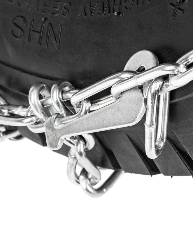 Łańcuchy Cedrus ACC0087 pasują do kół o wymiarach 18x7.5x8 i mają poprzeczki ułożone w wygodnym układzie drabinkowym. Ogniwa o przekroju kwadratowym i grubości 4.5 mm dobrze wgryzają się w śnieg, dzięki czemu koła stabilnie trzymają się podłoża nawet na oblodzonych drogach i pagórkach wokół domu.