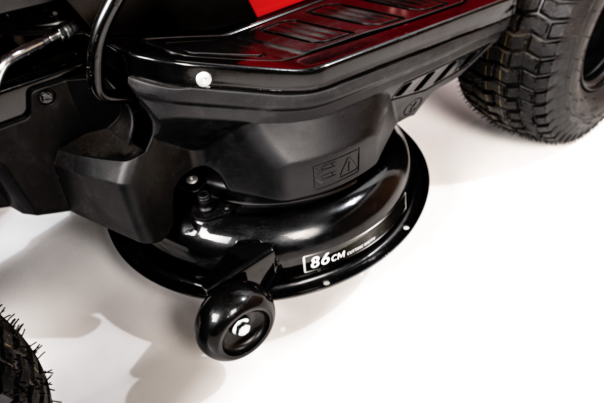 - Szerokość koszenia 86 cm – dwa precyzyjne noże z elektromagnetycznym sprzęgłem zapewniają szybkie, równomierne i dokładne cięcie.