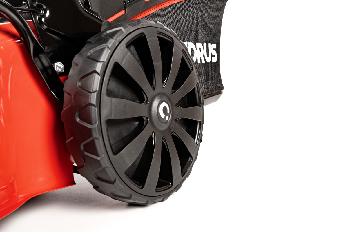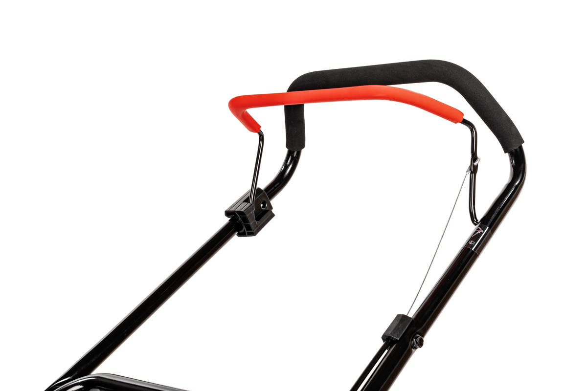 Złącze do mycia obudowy ułatwia czyszczenie urządzenia po koszeniu — podłączasz wąż i gotowe. Kosiarka nie ma napędu, dzięki czemu konstrukcja jest lżejsza i bardziej niezawodna.