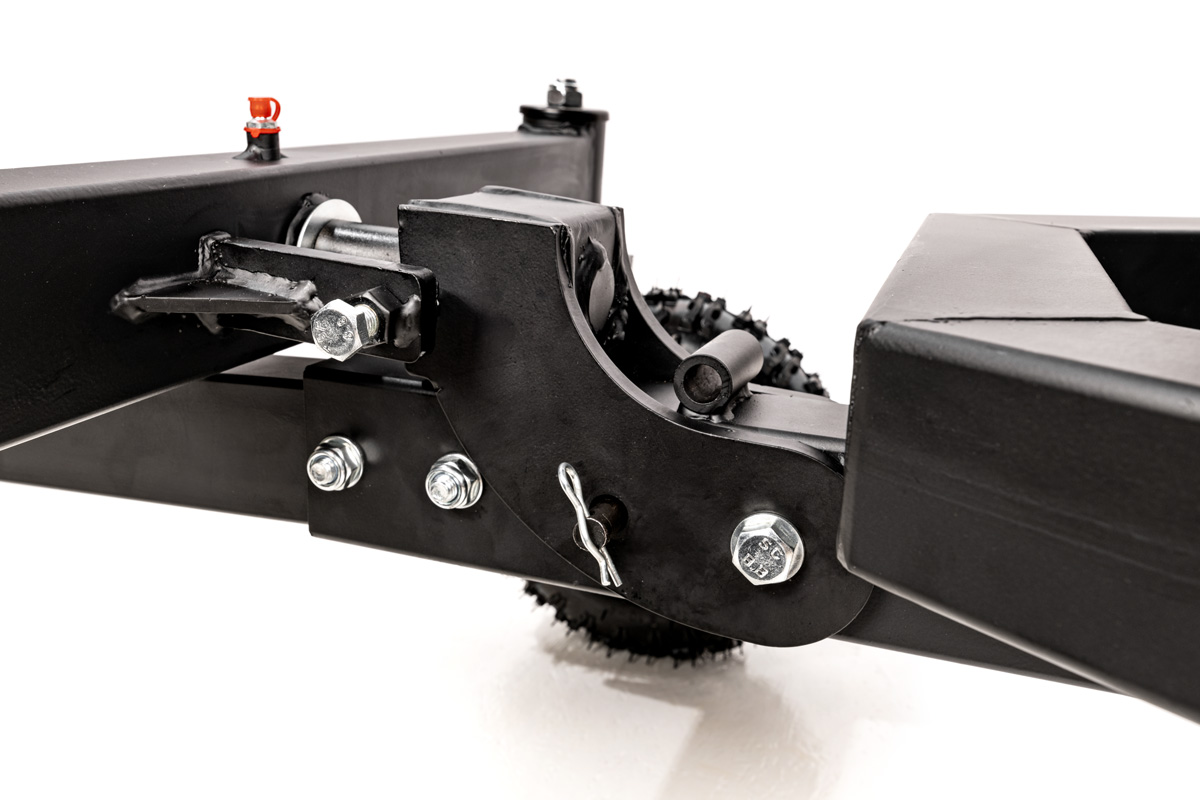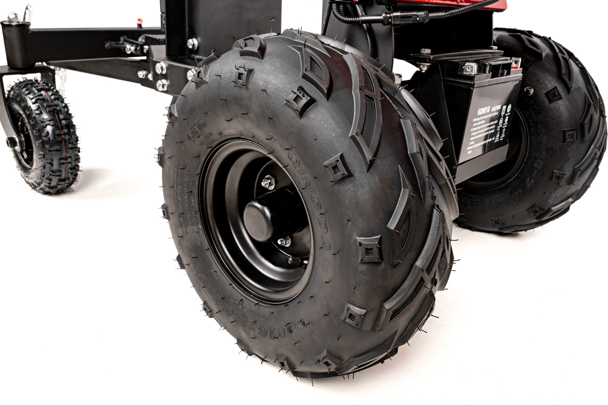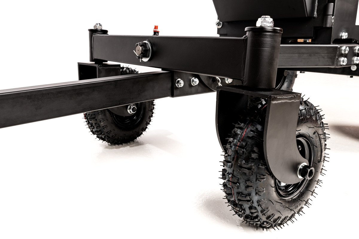 - Pompowane koła terenowe i zaczep samochodowy sprawiają, że transport maszyny (260 kg) jest prosty i wygodny.