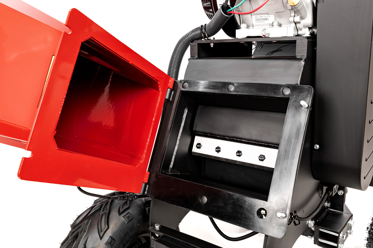 - Regulowany komin wyrzutowy pozwala skierować zrębki tam, gdzie ich potrzebujesz.