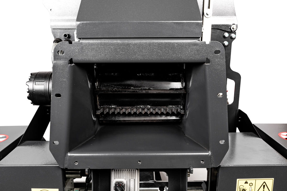 - Hydrauliczny podajnik z systemem antystres IFS – płynne wciąganie materiału i ochrona przed przeciążeniem.