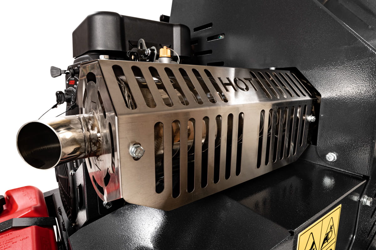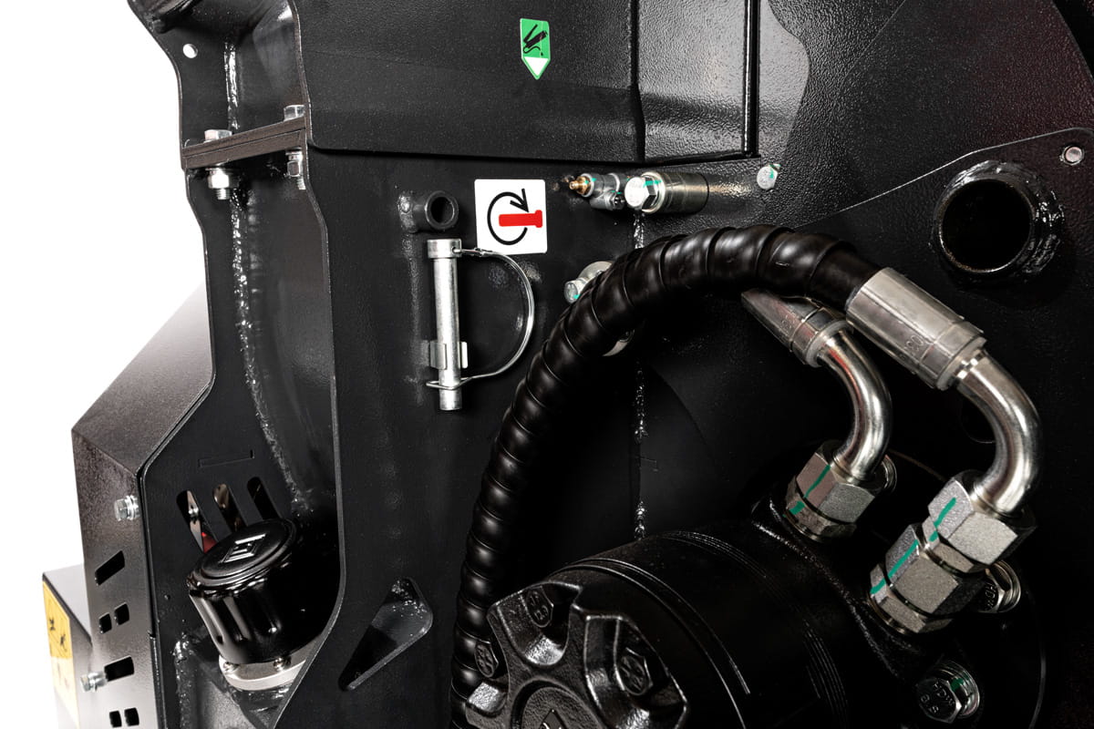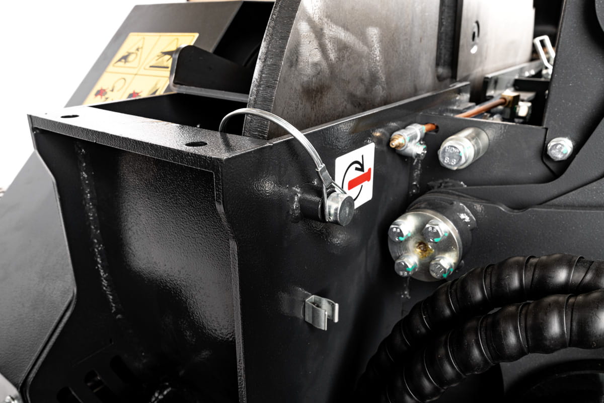 - Regulacja wyrzutu – komin 360° i deflektor 90° – pełna kontrola nad kierunkiem rozdrobnionego materiału.