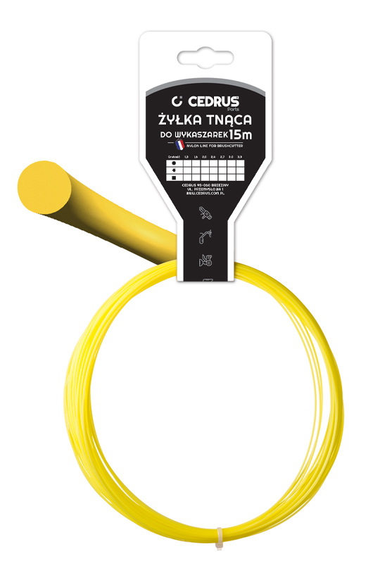 Okrągły przekrój sprawia, że żyłka działa równo i przewidywalnie, a żółty kolor ułatwia kontrolę w trakcie pracy. Średnica 1,3 mm to dobry wybór do lekkiego i średniego podkaszania, kiedy zależy ci na precyzji, a nie na walce ze sprzętem. Piętnaście metrów w opakowaniu pozwala spokojnie uzupełniać zapas, gdy tylko zajdzie potrzeba.