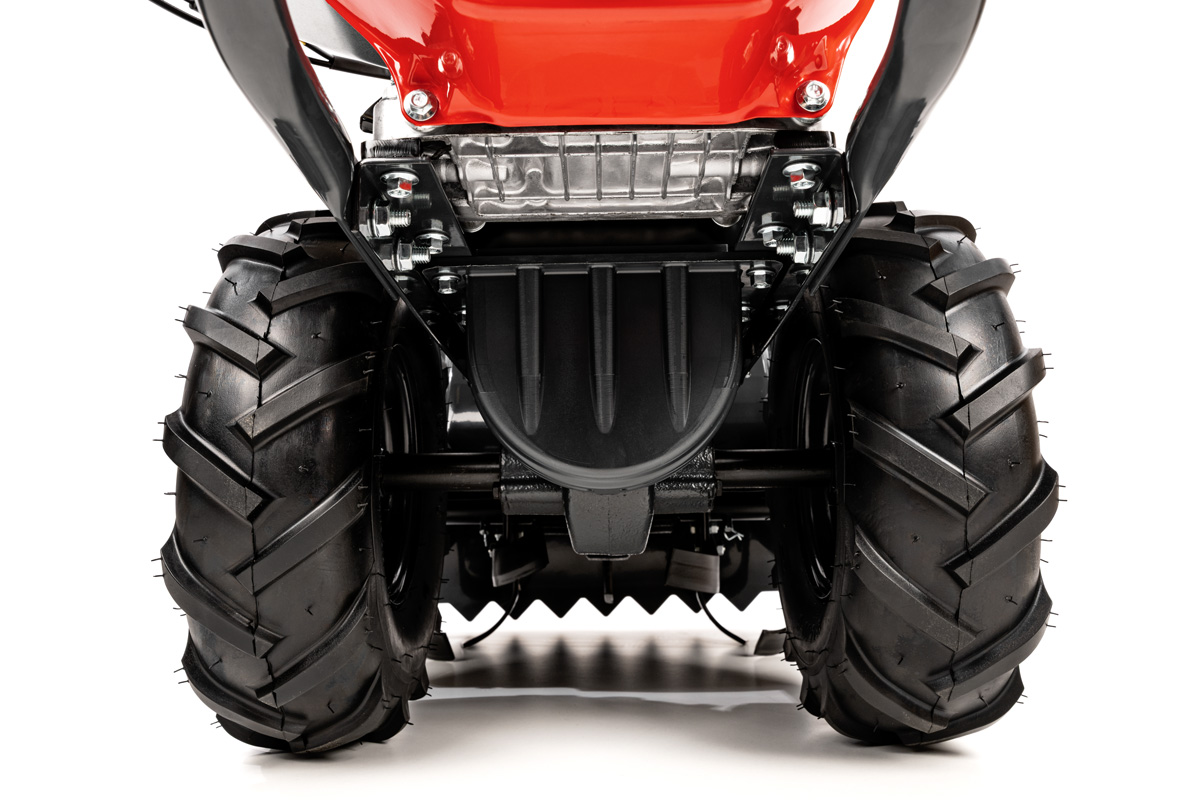 Dzięki biegom do przodu i do tyłu (1/1) manewrowanie glebogryzarką staje się proste i wygodne, nawet w ciasnych przestrzeniach ogrodu.