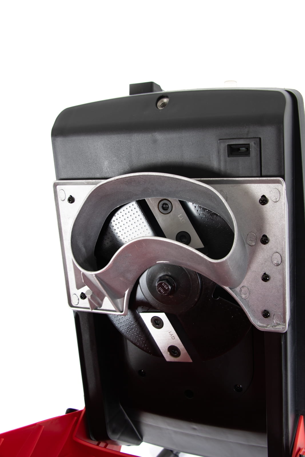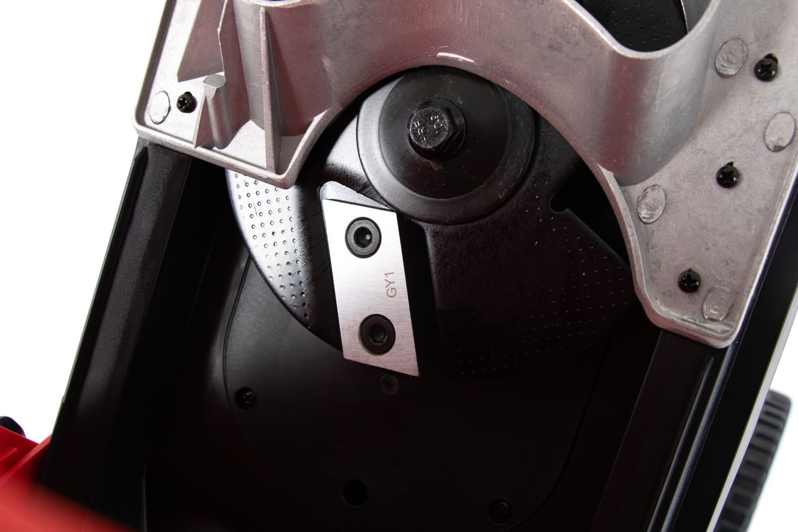 - Tarcza tnąca z dwoma nożami – gwarantuje skuteczne i szybkie cięcie, bez zacinania.