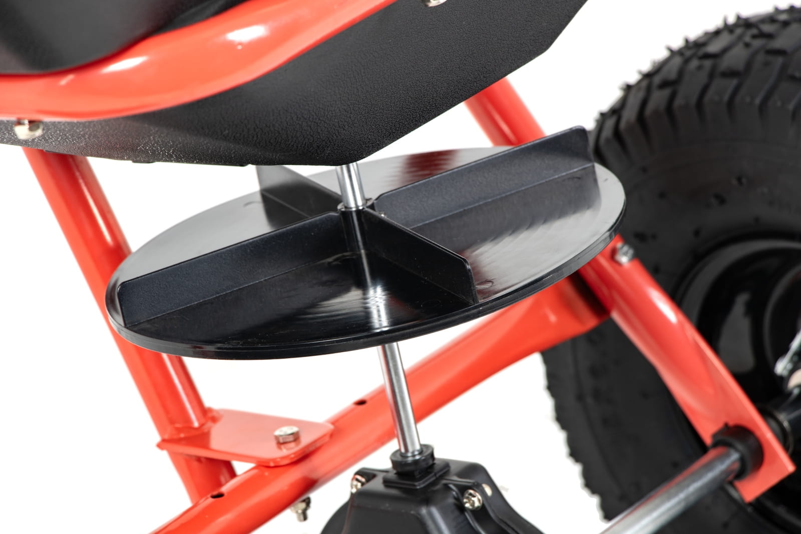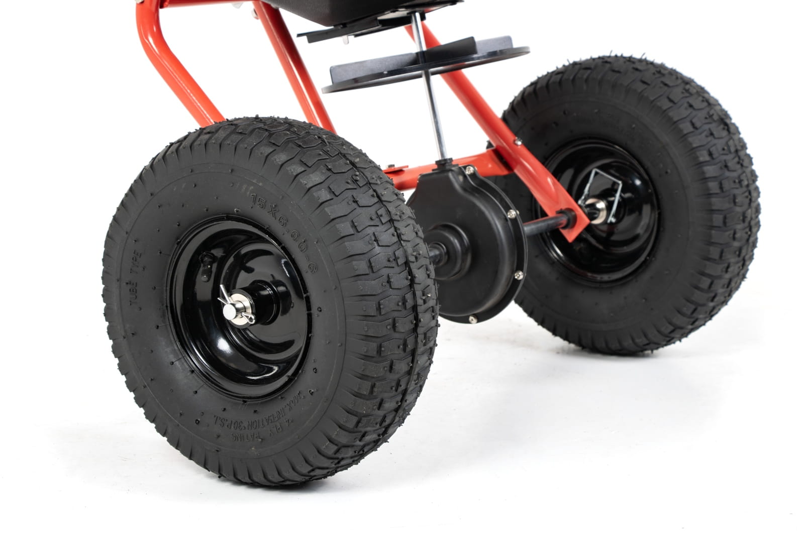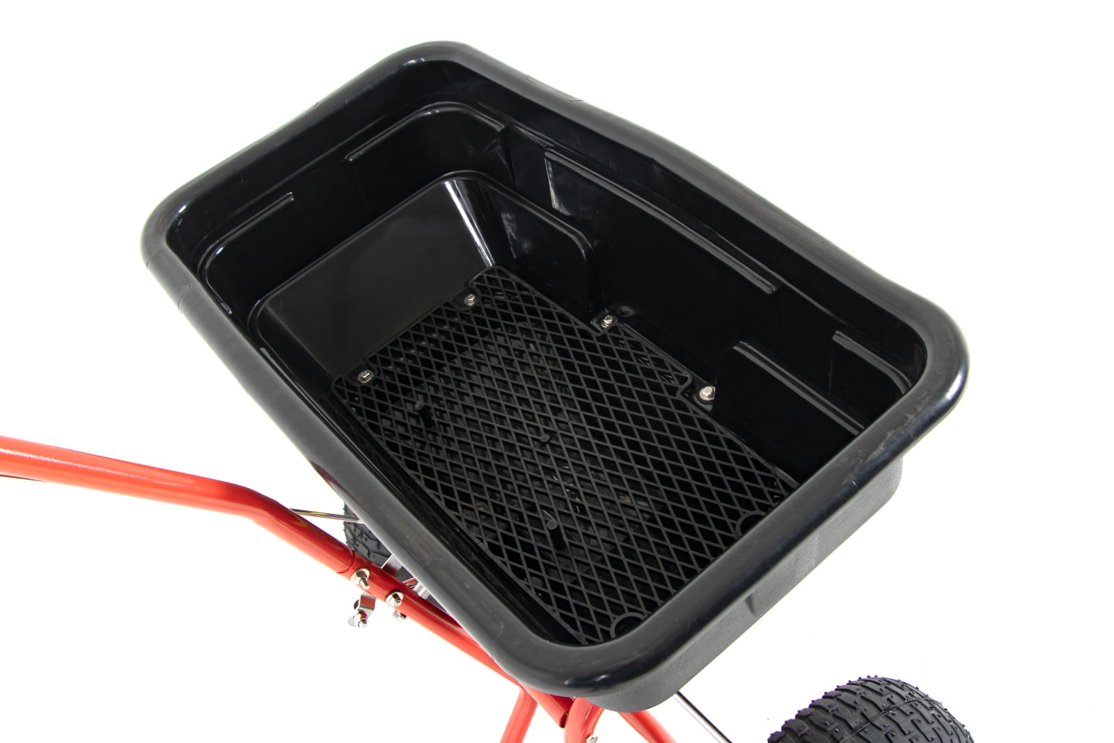 - Duże pneumatyczne koła o średnicy 34 cm - Siewnik prowadzi się lekko nawet po trudnym terenie – bez zakopywania się i szarpania.