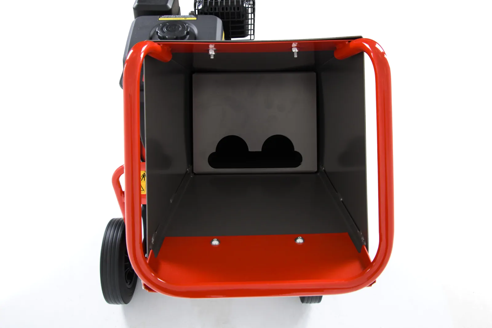 Dolny wyrzut ścinek sprawia, że rozdrobniony materiał trafia bezpośrednio do worka, co przyspiesza sprzątanie i utrzymanie porządku wokół maszyny.