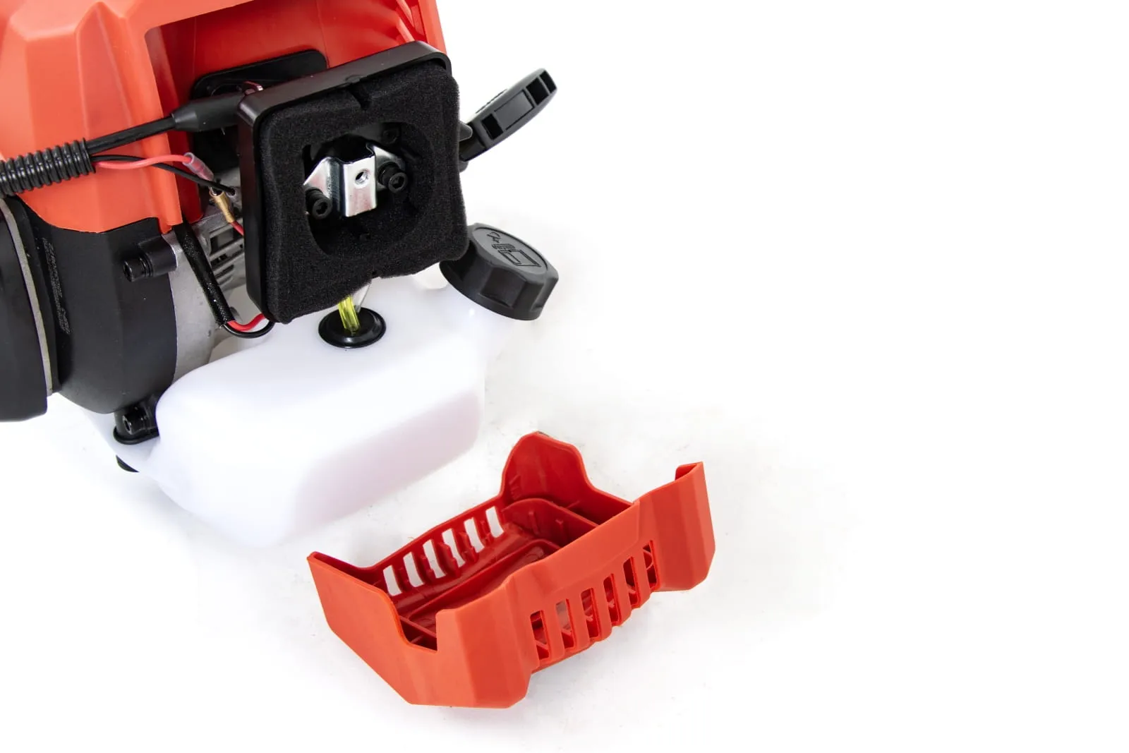 - Potężny silnik 3,7 KM (65 cm³) – dwusuwowa jednostka napędowa zapewnia nie tylko imponującą moc, ale też niezawodność, dzięki czemu bez problemu poradzisz sobie z gęstą roślinnością na działce, w sadzie czy na nieużytkach.