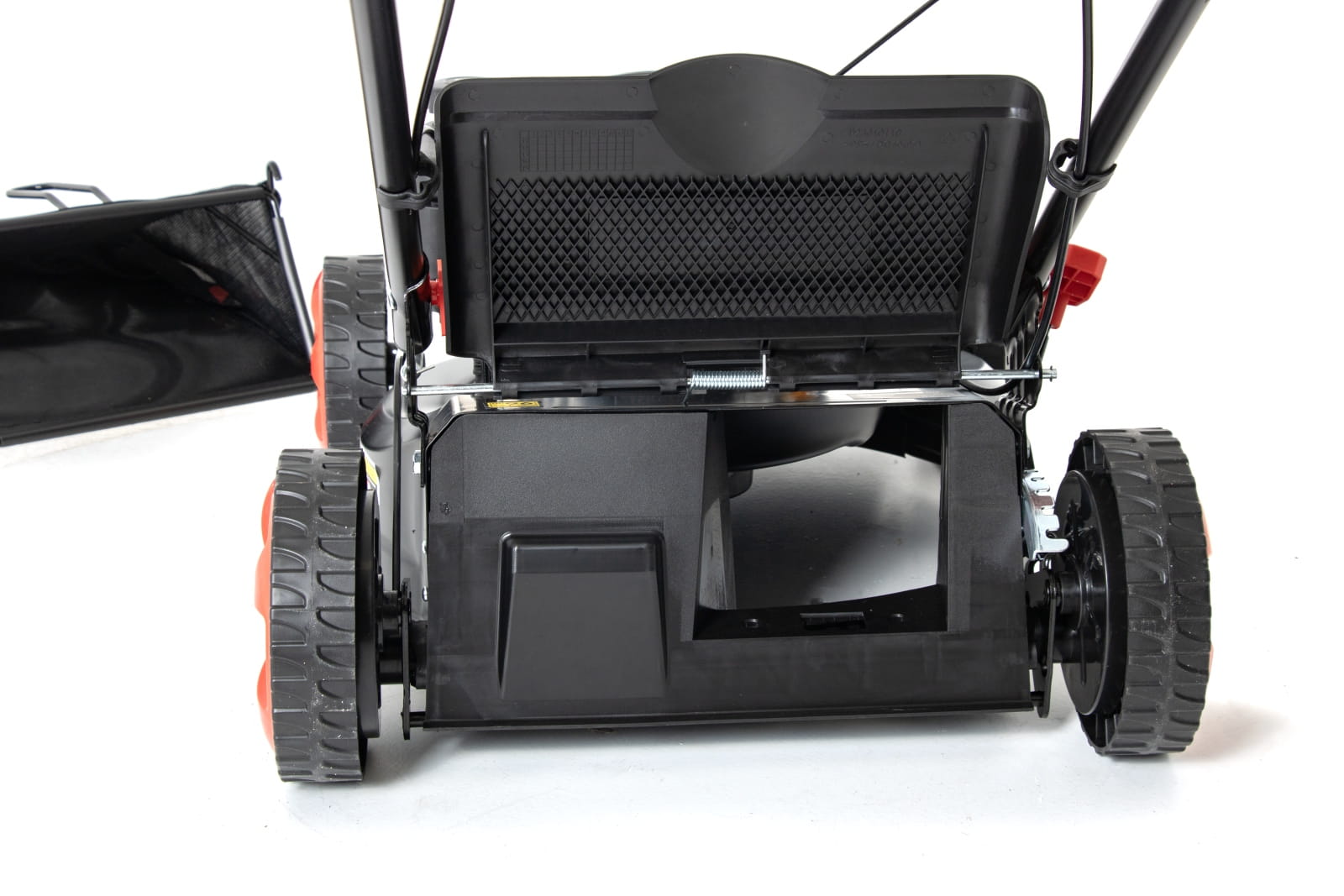 - Szerokość robocza 46 cm – sprawne koszenie większych powierzchni przy mniejszej liczbie przejazdów.