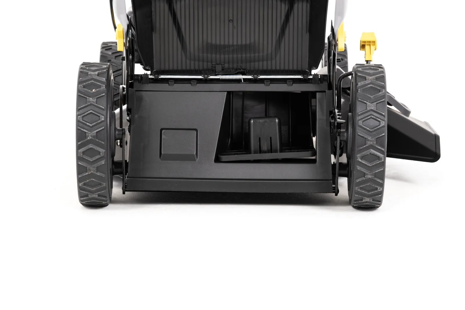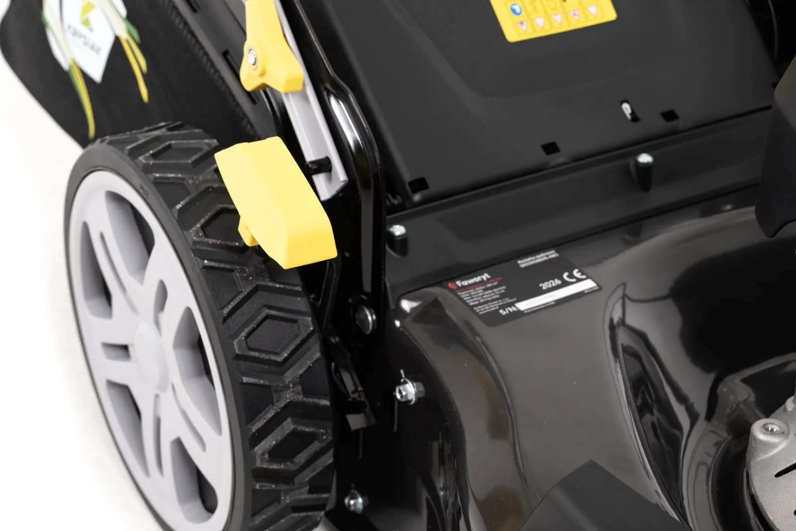 Napęd na koła – większy komfort prowadzenia - Model został wyposażony w napęd na tylne koła, który ułatwia prowadzenie kosiarki podczas pracy. Rozwiązanie to szczególnie sprawdza się na większych trawnikach oraz na lekko nierównym lub nachylonym terenie, ograniczając wysiłek użytkownika.