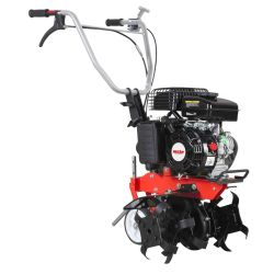 Maszyna jest wyposażona w koła uchylne dla łatwego transportu. Regulowana tylna redlica - ostroga służy jako hamulec, który nie tylko zmniejsza fizyczne wymagania operatora, ale także poprawia jakość struktury gleby. Stalowe uchwyty zapewniają operatorowi doskonałą kontrolę nad maszyną. Stalowa konstrukcja ma długą żywotność.