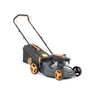 - Szerokość robocza 46 cm – pozwala szybko skosić większą powierzchnię trawnika.