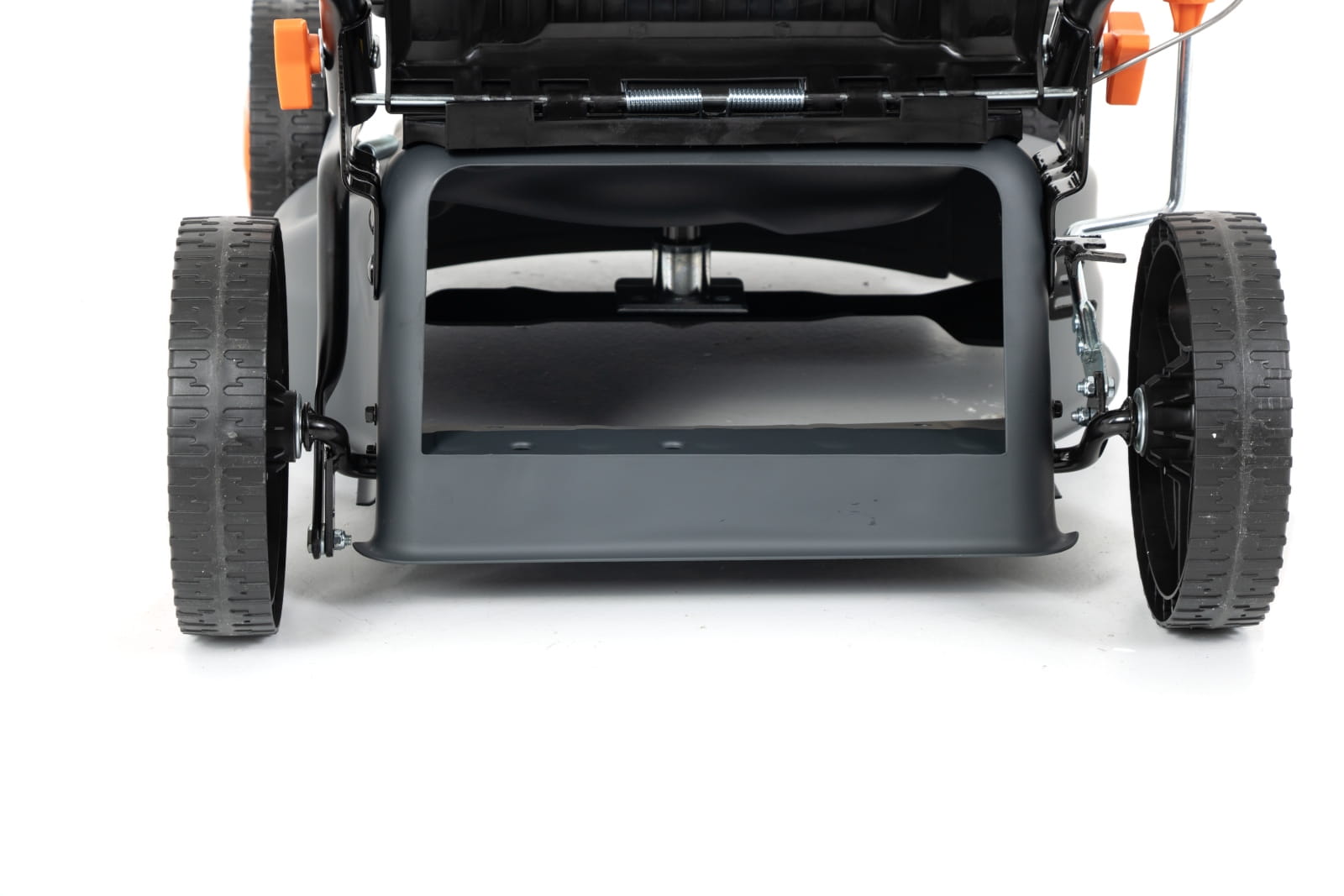 - Solidna, stalowa obudowa – odporna na uszkodzenia i zapewniająca długą żywotność kosiarki.