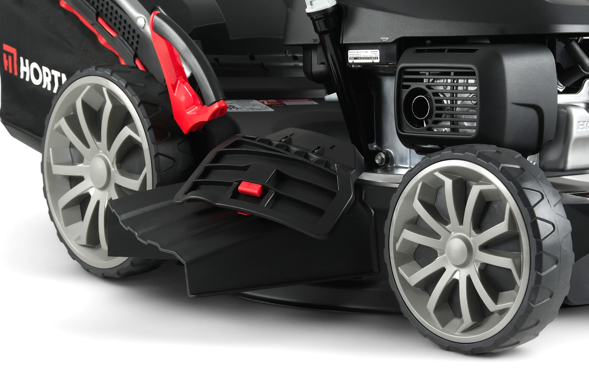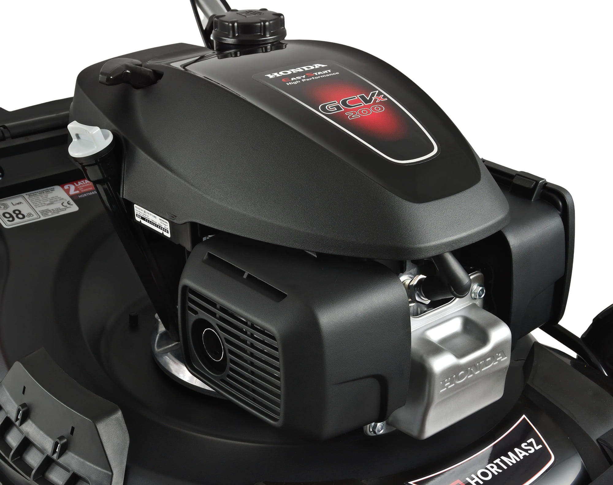Hortmasz HKS 553 NH to kosiarka dla osób, które oczekują niezawodności i komfortu. Silnik Honda GCV200 o pojemności 201 cm³ i mocy 5,3 KM zapewnia spokojną, równą pracę nawet na większych powierzchniach i trudniejszym terenie.