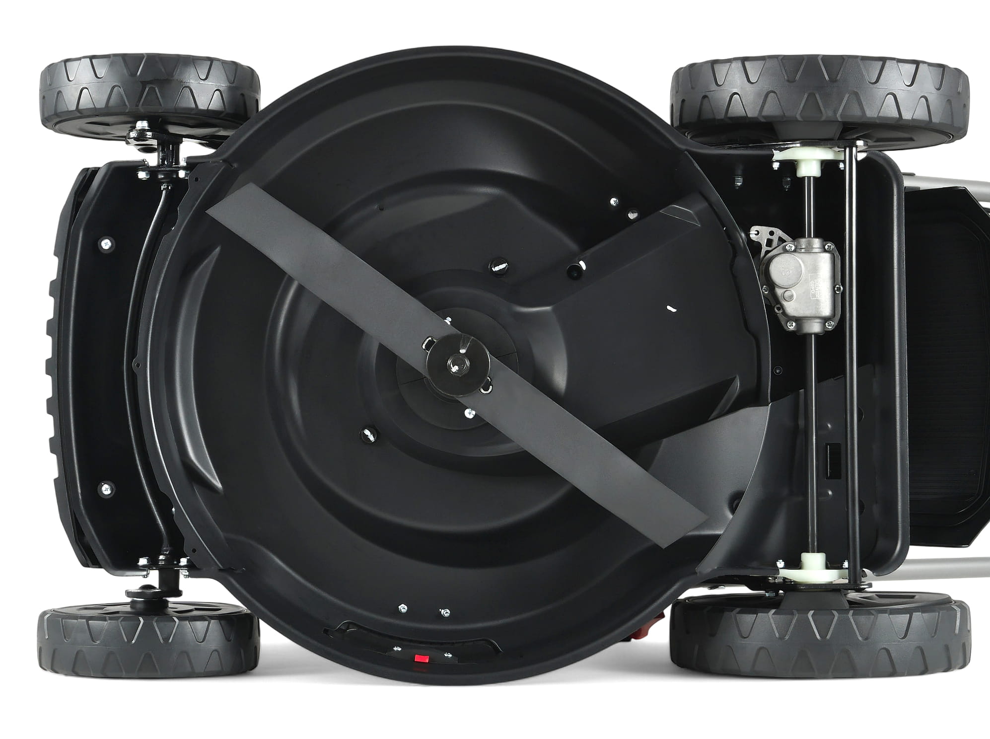 Napęd oparty na metalowej przekładni bez elementów plastikowych. Pracuje płynnie, jest bezobsługowy i zaprojektowany do regularnego użytkowania. Ułatwia skręcanie i nawroty, co szczególnie docenisz na większym trawniku.