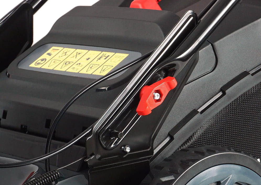 - Centralna regulacja wysokości (30–95 mm) – dopasuj trawnik do własnych potrzeb w kilka sekund, jedną dźwignią.