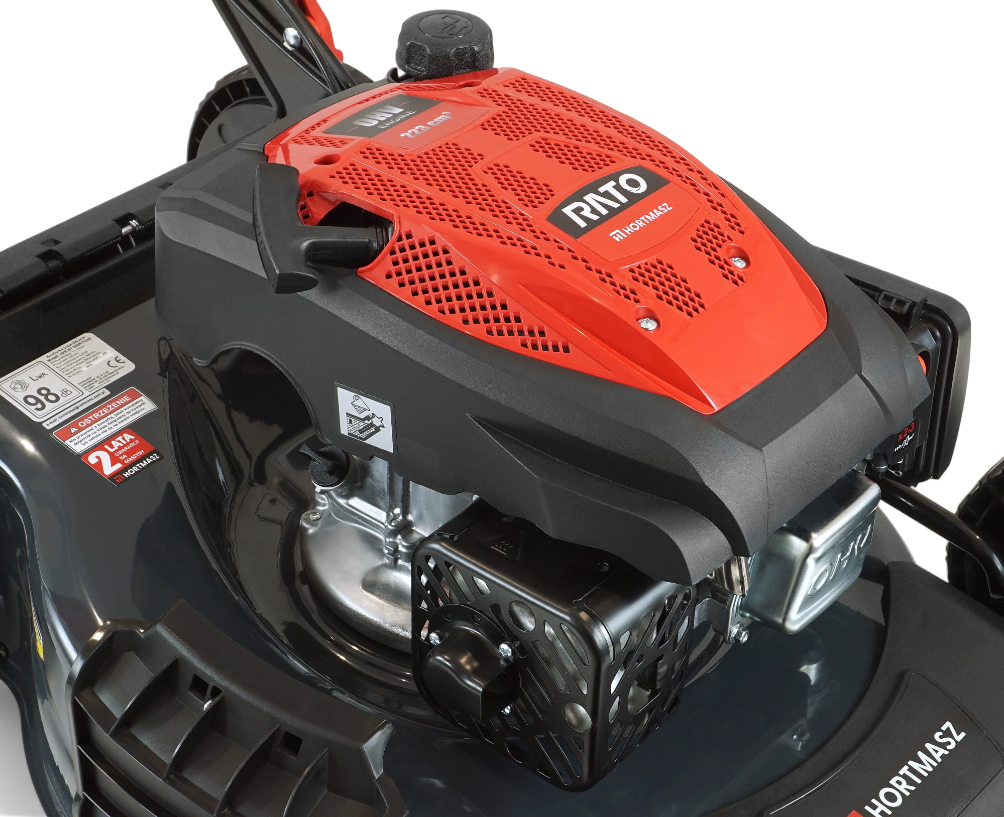 Silnik RATO o pojemności 223 cm³ z żeliwną tuleją radzi sobie także na nierównym terenie i przy wyższej trawie. To sprzęt, który nie wymaga ciągłego „prowadzenia siłą”.