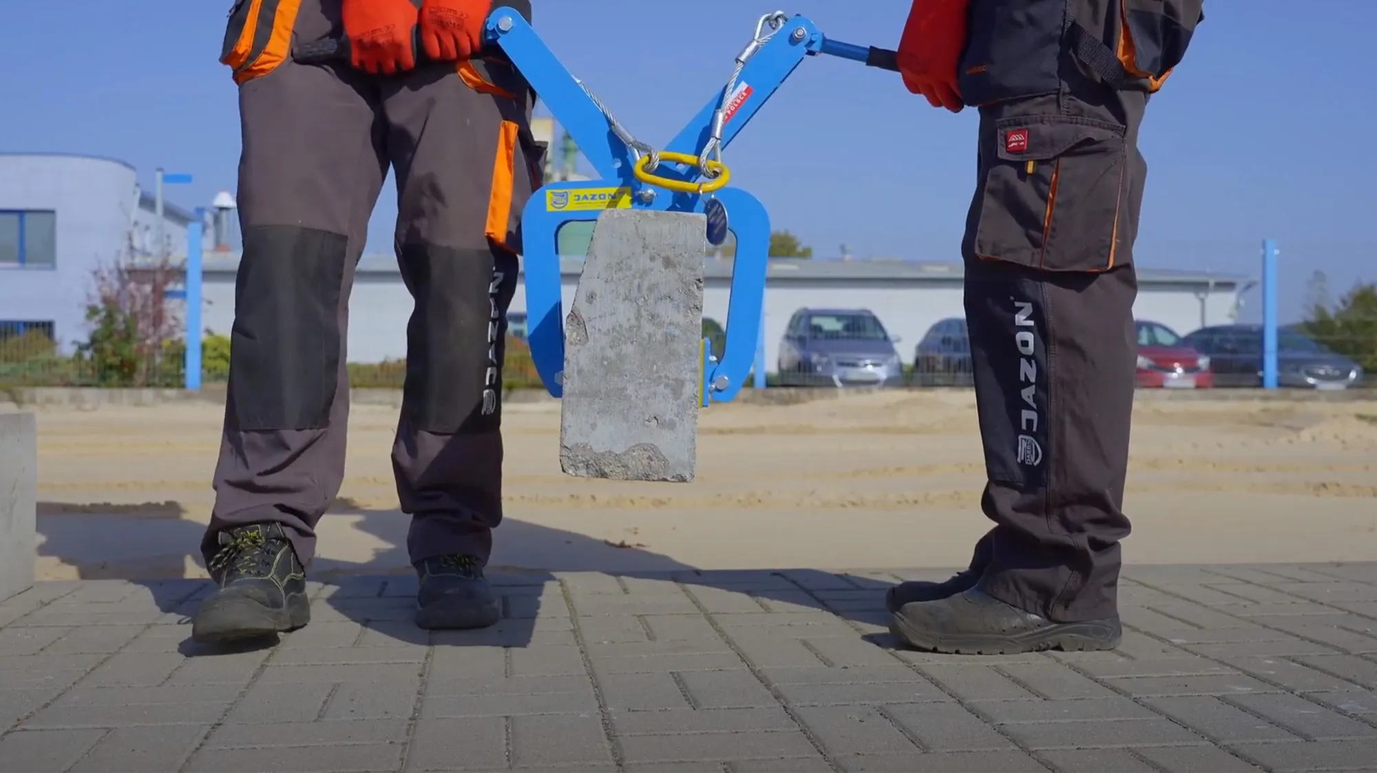 Dzięki regulowanej szerokości chwytu narzędzie można dopasować do różnych typów elementów betonowych, co czyni je rozwiązaniem uniwersalnym podczas prac brukarskich i drogowych.