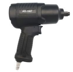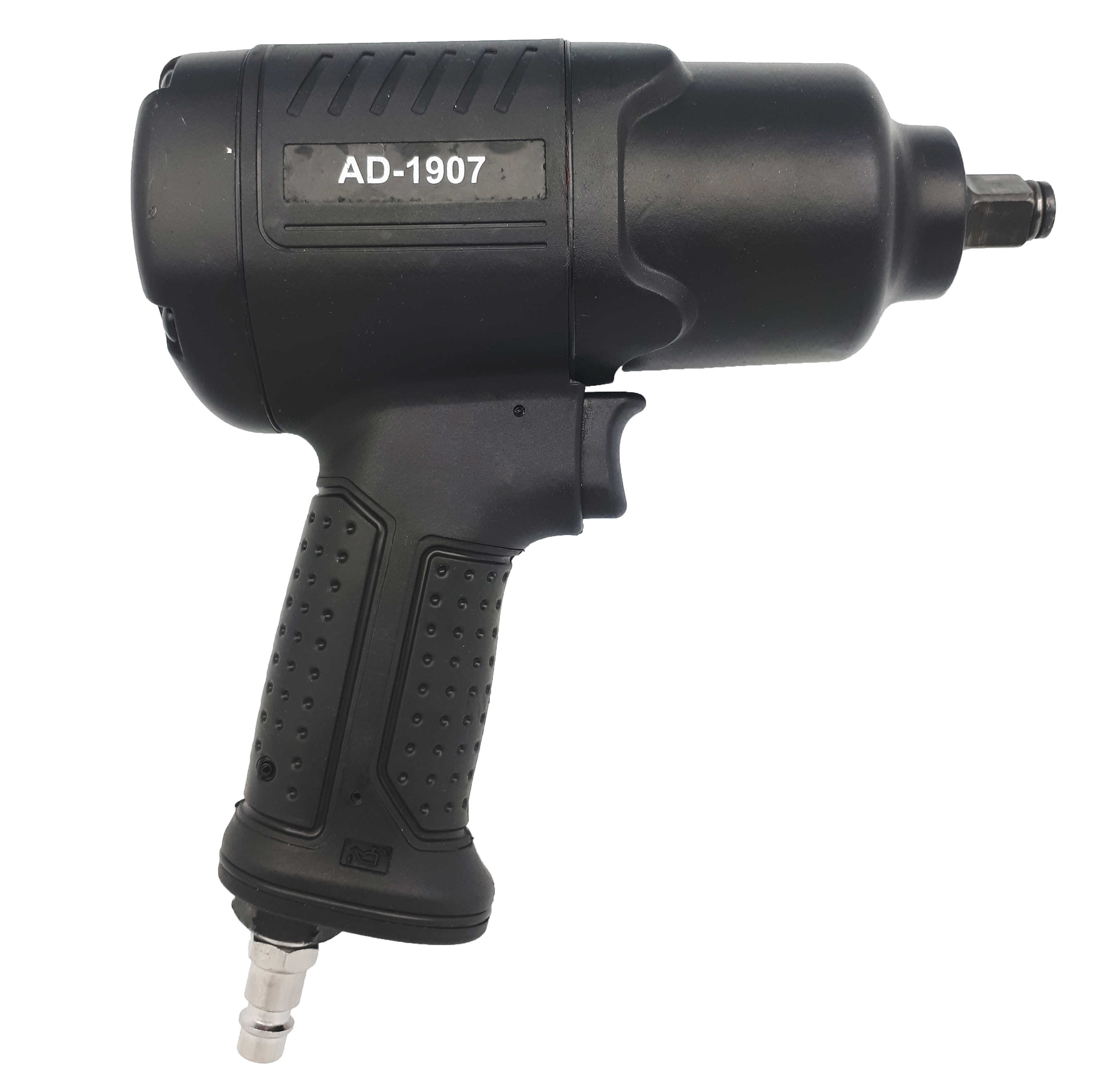 Pneumatyczny klucz udarowy 1/2" 1590Nm kompozytowy AD-1907  to narzędzie przemysłowe i warsztatowe o szerokim zastosowaniu. Wykorzystywany jest w pracach montażowych i demontażowych, przy liniach produkcyjnych, w warsztatach naprawczych i serwisach samochodowych, znajduje zastosowanie w domowych pracach garażowych. Jego zalety to trwałość, ergonomia pracy, komfort użytkowania, funkcjonalność, niska awaryjność, odporność na trudne warunki pracy (kurz, zawilgocenie, itp.). Model AD-1907 posiada lekką obudowę z tworzywa kompozytowego. Wykorzystane podzespoły, precyzja montażu oraz dbałość o każdy detal zadowoli każdego użytkownika. Mechanizm udarowy typu TWIN HAMMER szybko generuje wysoki moment obrotowy. W podzespołach klucza AD-1907 zastosowano kilka udoskonaleń technicznych które w znacznym stopniu polepszają charakterystykę pracy i moc klucza. DANE TECHNICZNE: Model: AD-1907 Kod: MA1907 Rozmiar trzpienia (cal): 1/2 Maksymalny moment obrotowy (Nm): 1590 Obroty na minutę (r.p.m.): 7500 Średnie zużycie powietrza (l/min): 184 *przy 25% obciążeniu Ilość biegów (dokr./odkr.): 3 / 1 Max. ciśnienie pracy (bar): 6,3 Waga (kg): 2,1
