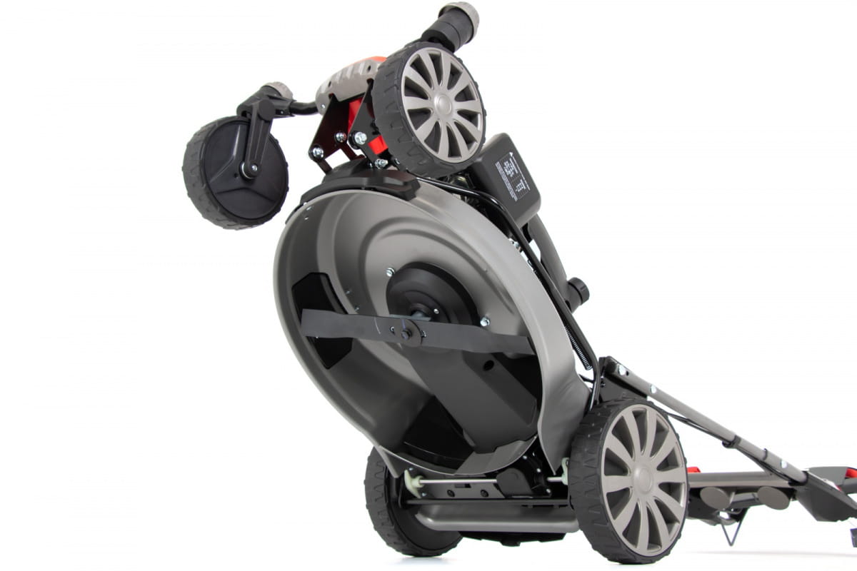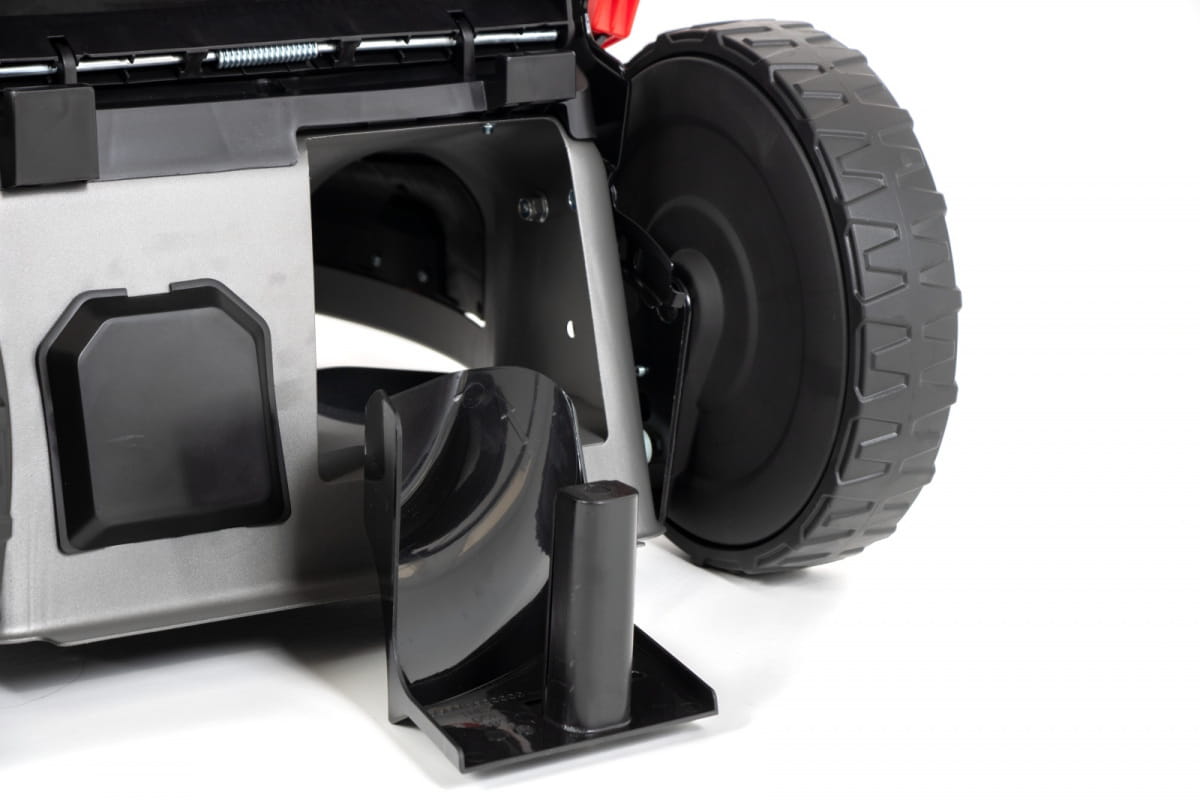 - Wygodna, regulowana kierownica i składany uchwyt – dopasuj kosiarkę do siebie i oszczędzaj miejsce podczas przechowywania.