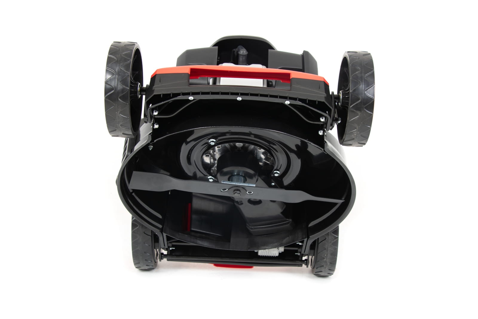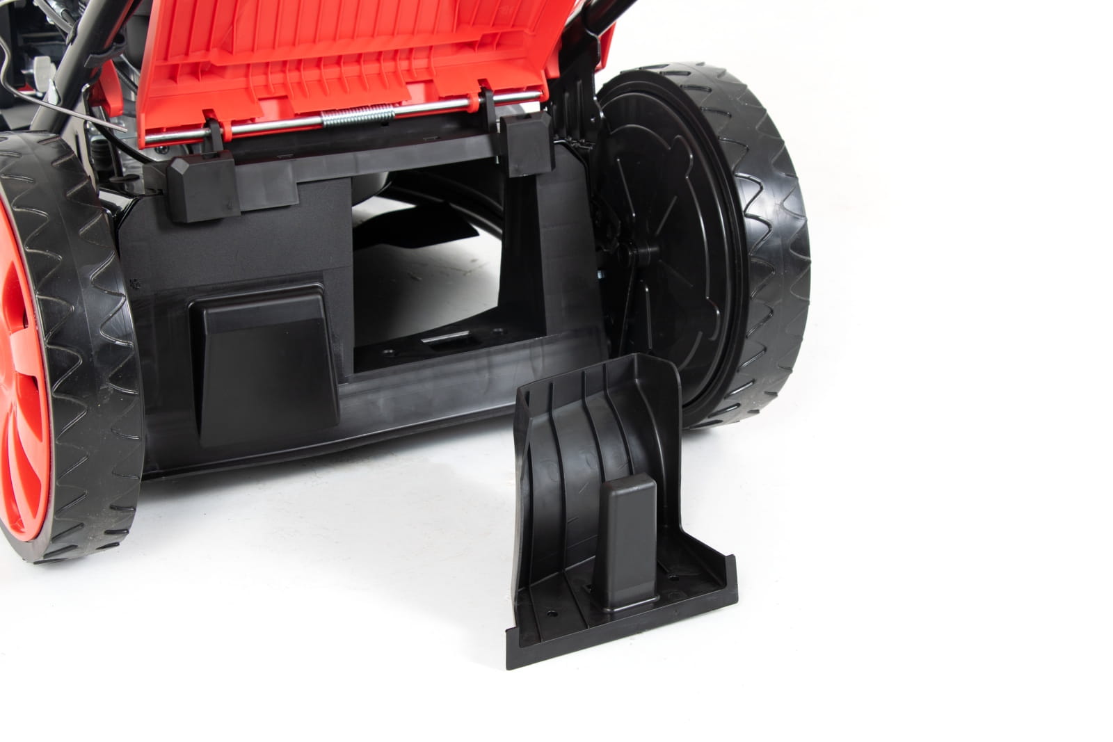 Po skończonej pracy wystarczy podłączyć wąż do złącza mycia obudowy – błyskawiczne czyszczenie bez szorowania i pochylania się. A dzięki składanej rączce kosiarkę z łatwością przechowasz nawet w niewielkim garażu.