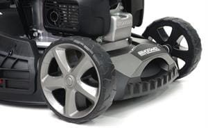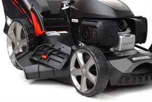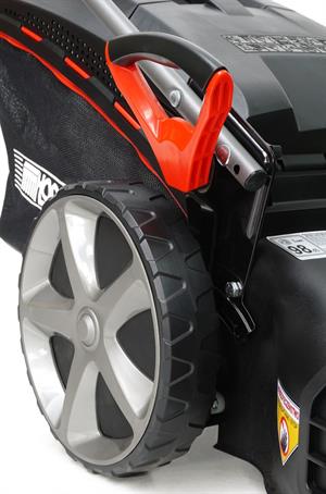 - Szerokość koszenia 51 cm + centralna regulacja wysokości (25–80 mm) - Koszenie dużych powierzchni idzie sprawnie i szybko. Jedna dźwignia = błyskawiczne ustawienie wysokości trawy.