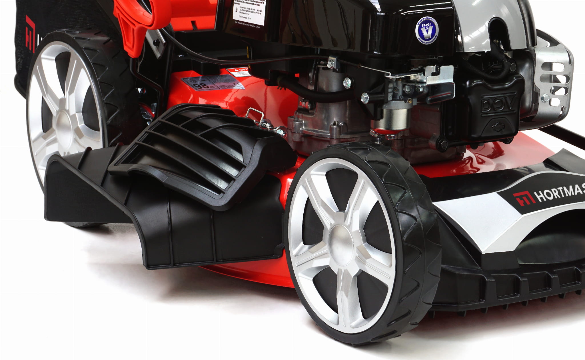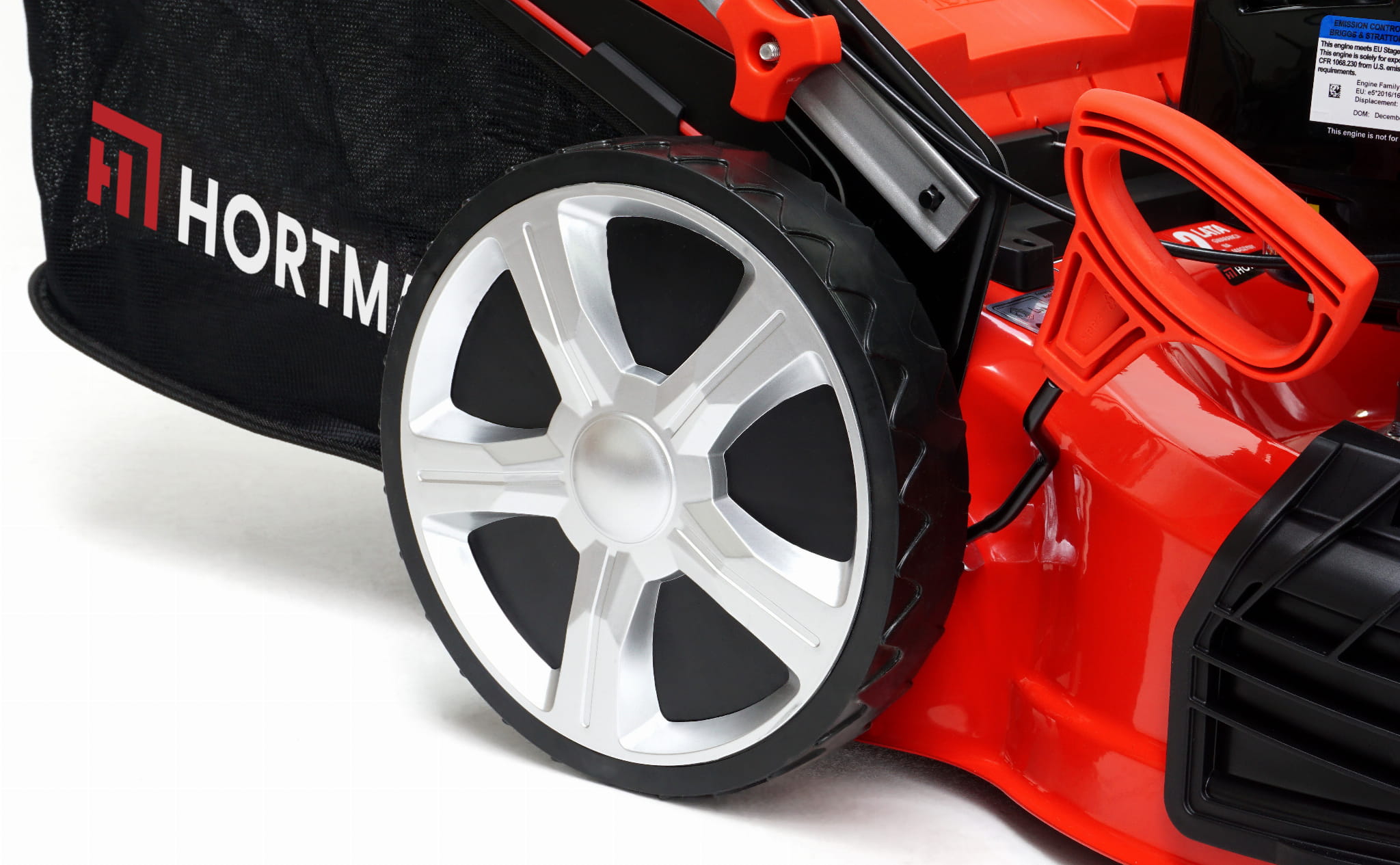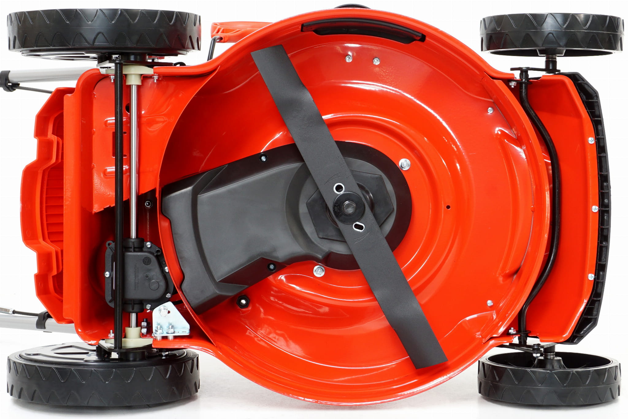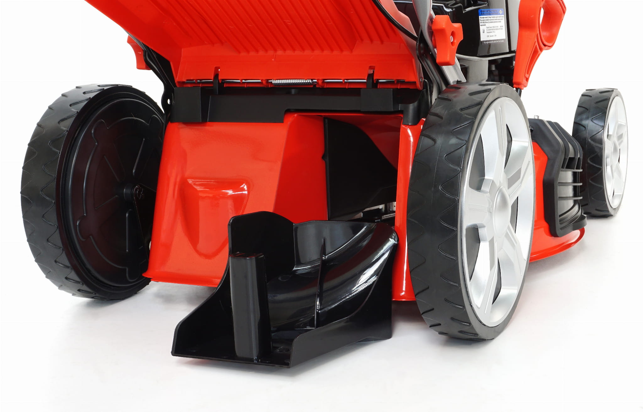 - Napęd na tylne koła – koniec z pchaniem kosiarki pod górę!
