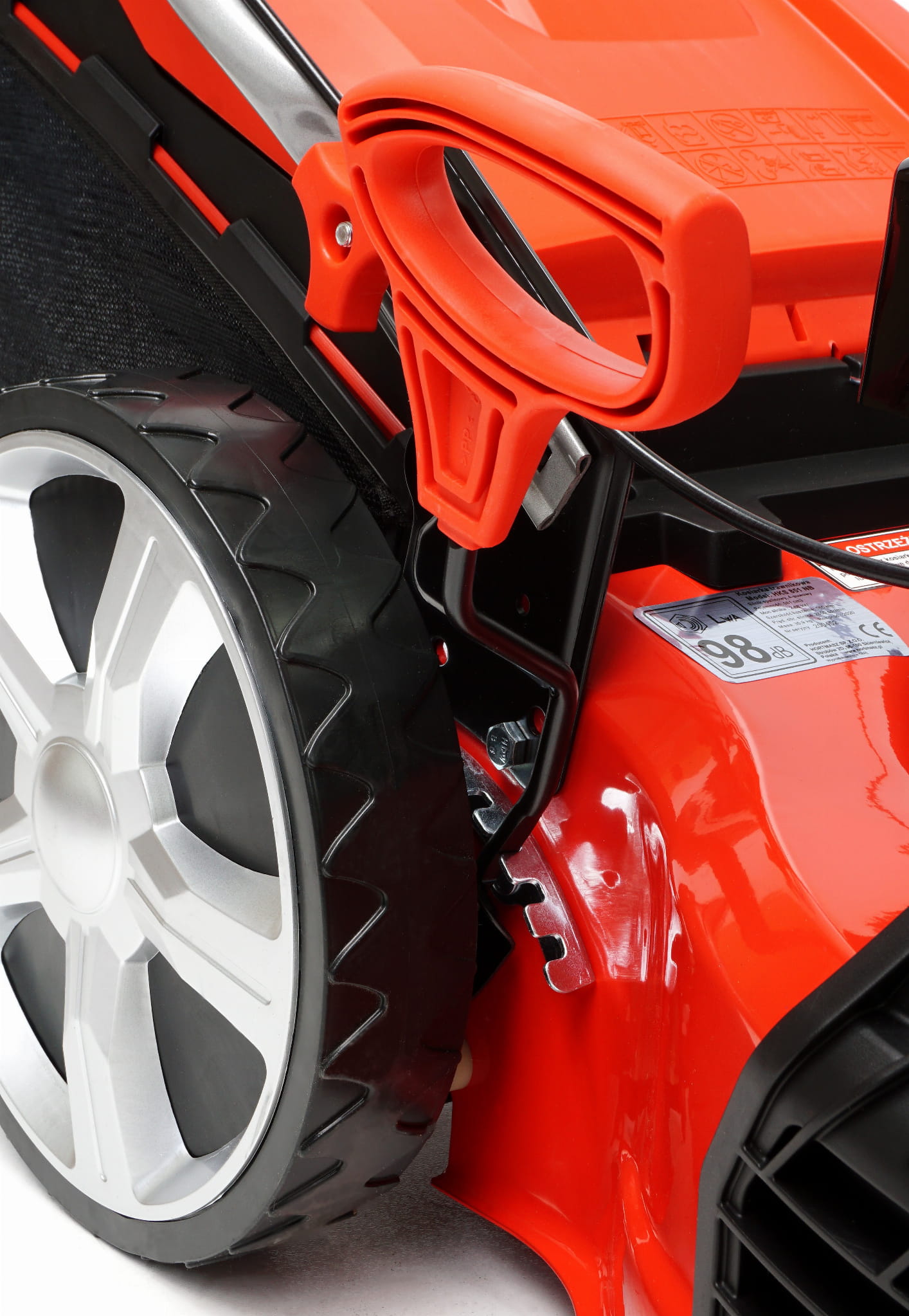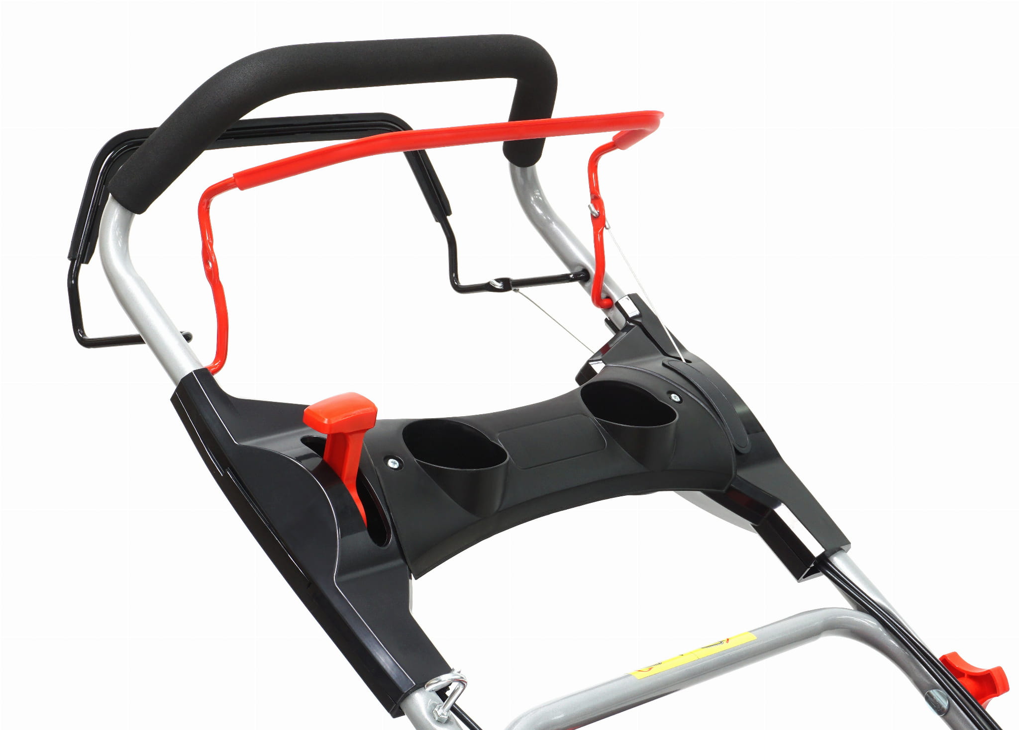 - Precyzyjna regulacja wysokości – wygodna dźwignia pozwala ustawić koszenie od 2,5 do 7,5 cm.