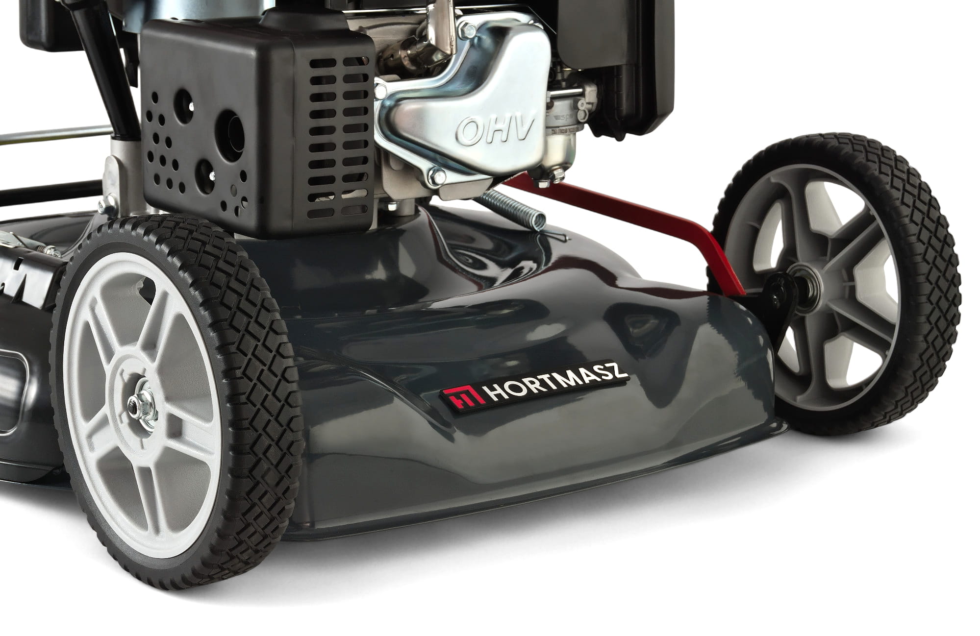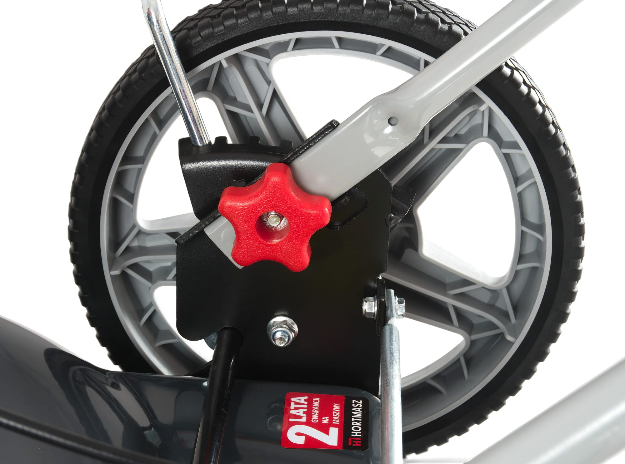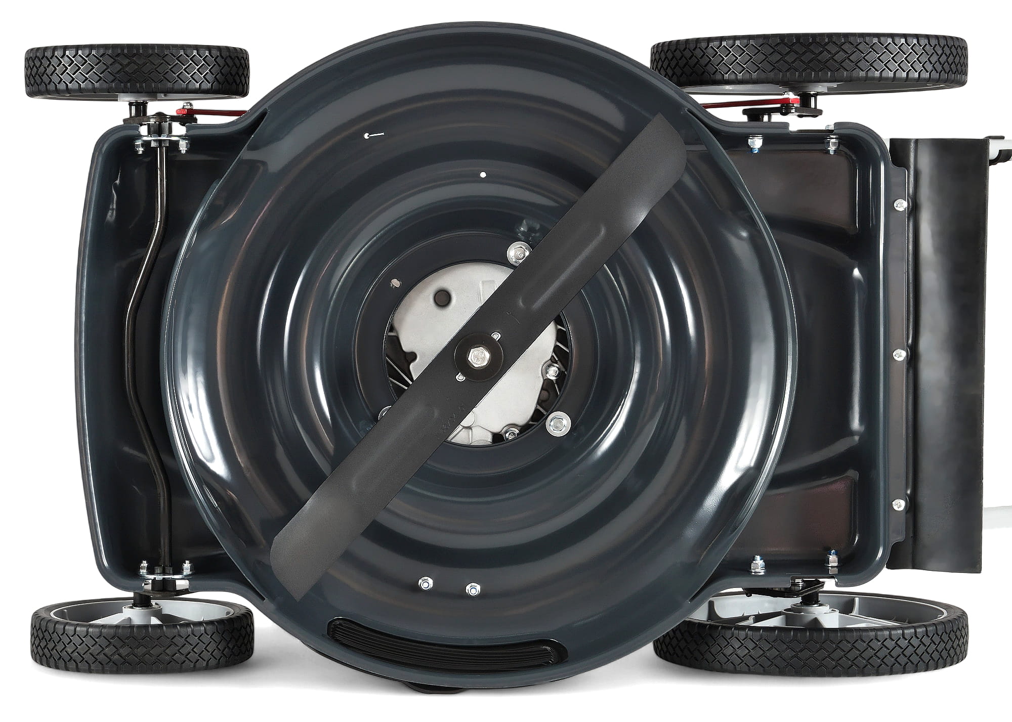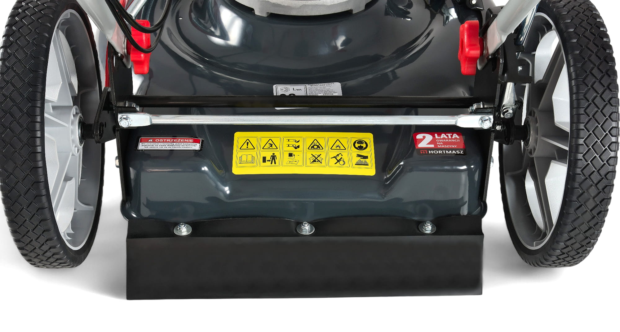 - Podwójnie łożyskowane koła - Lepsza płynność jazdy, większa odporność na zużycie i komfort prowadzenia kosiarki.