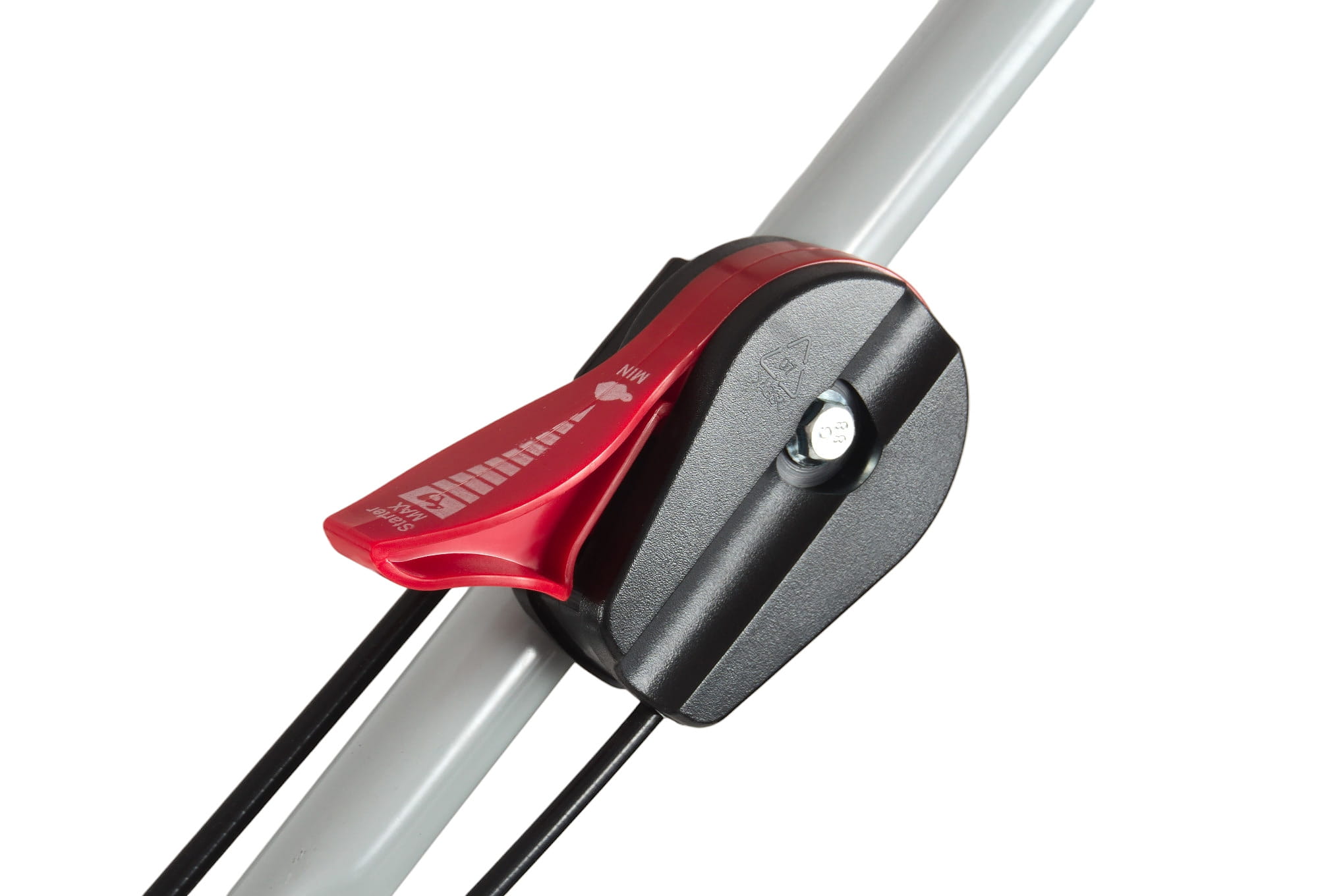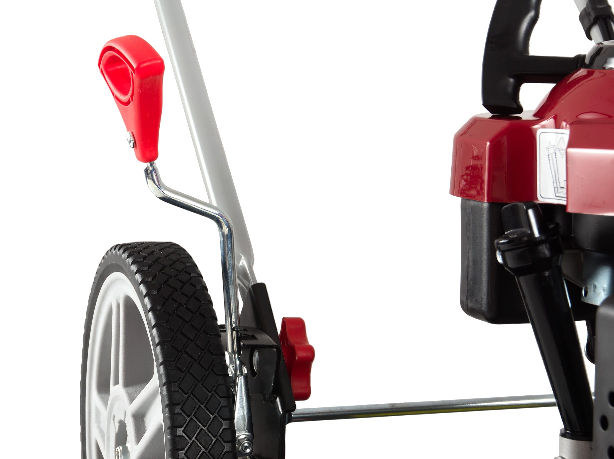 - Centralna regulacja wysokości (2,5–7,5 cm) - Jedna dźwignia = szybkie i wygodne dopasowanie wysokości cięcia do warunków trawnika.
