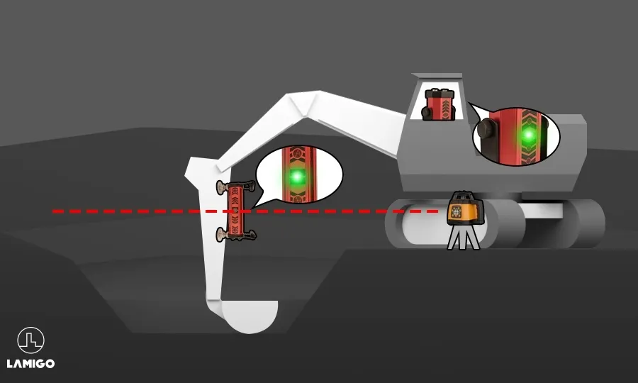 - Stała kontrola poziomu w czasie rzeczywistym - Detektor wykrywa wiązkę laserową w zakresie 360°, dzięki czemu masz pełną kontrolę nad wysokością roboczą maszyny.