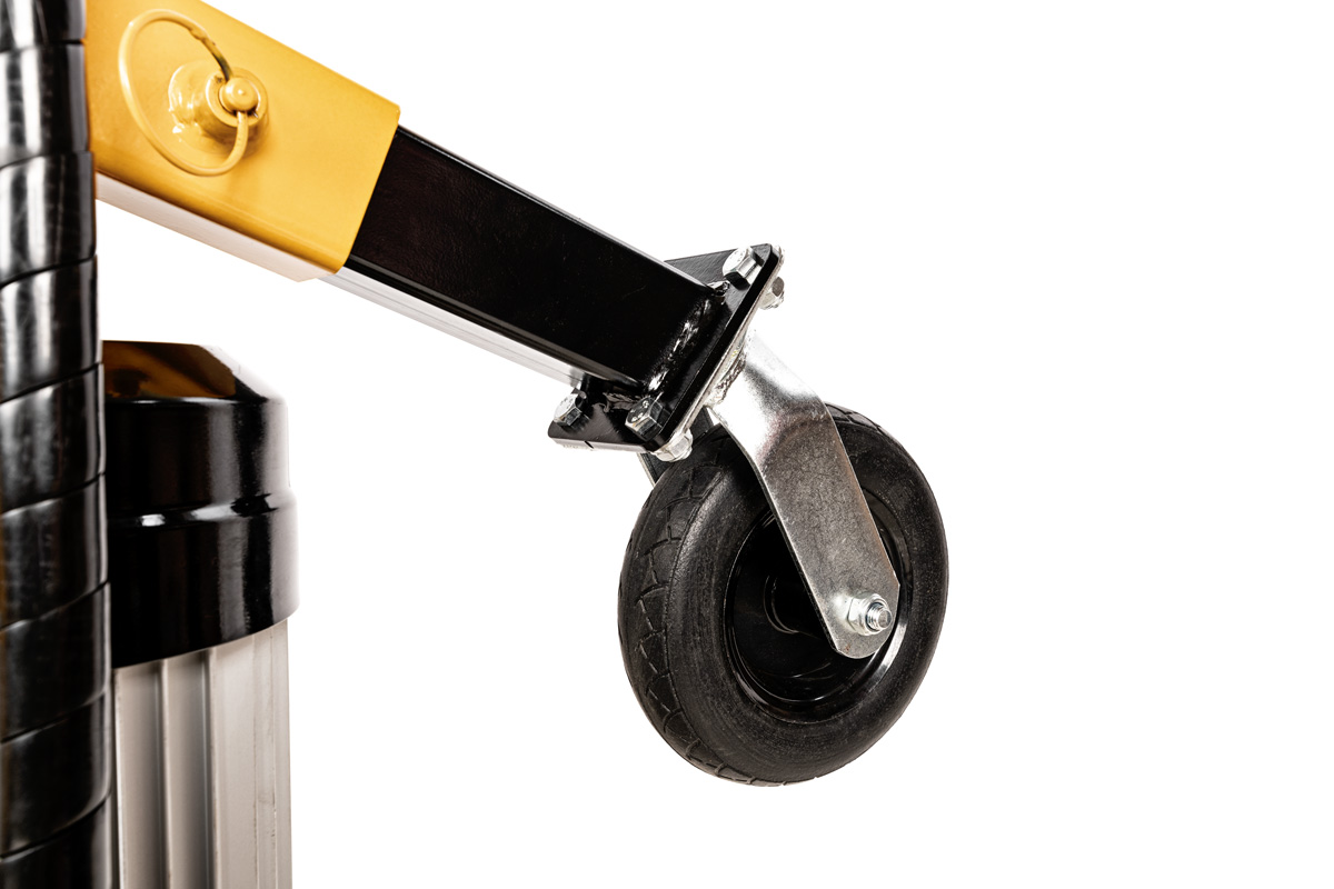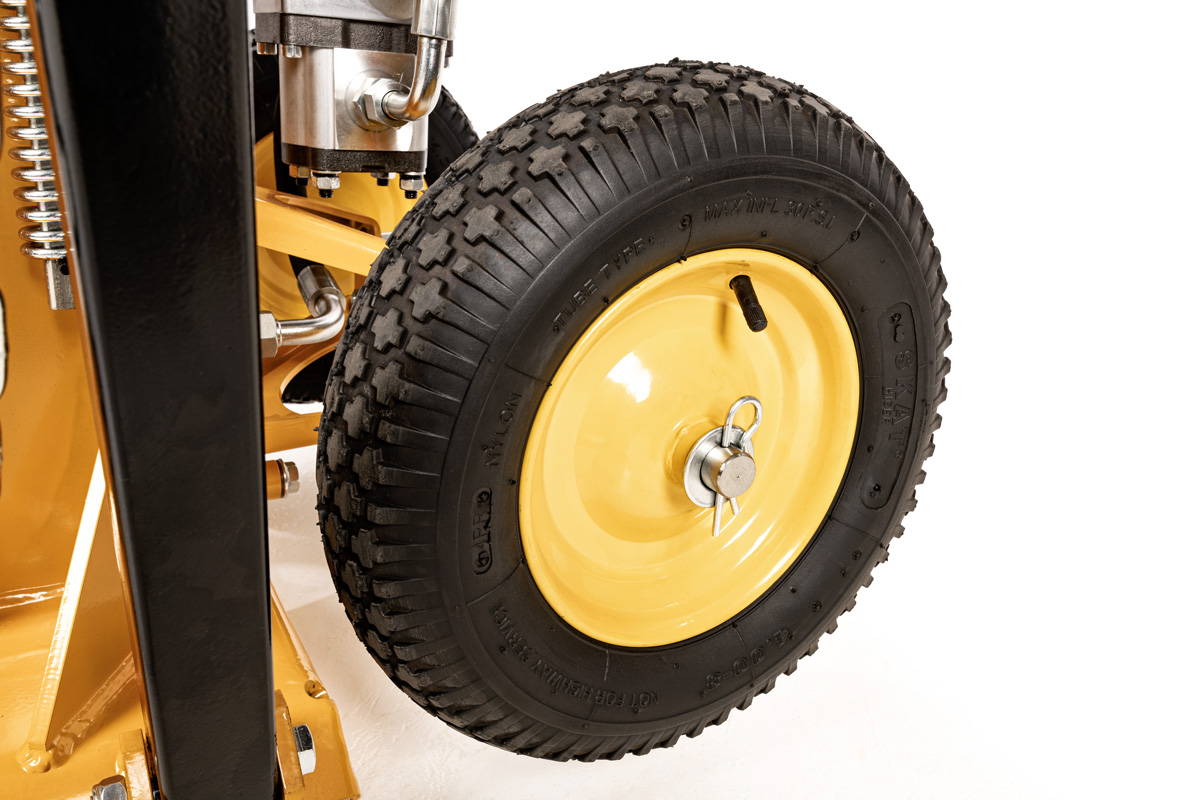 - Koła transportowe - Łatwo przestawisz urządzenie w dowolne miejsce – pompowane koła zapewniają mobilność mimo dużej wagi.