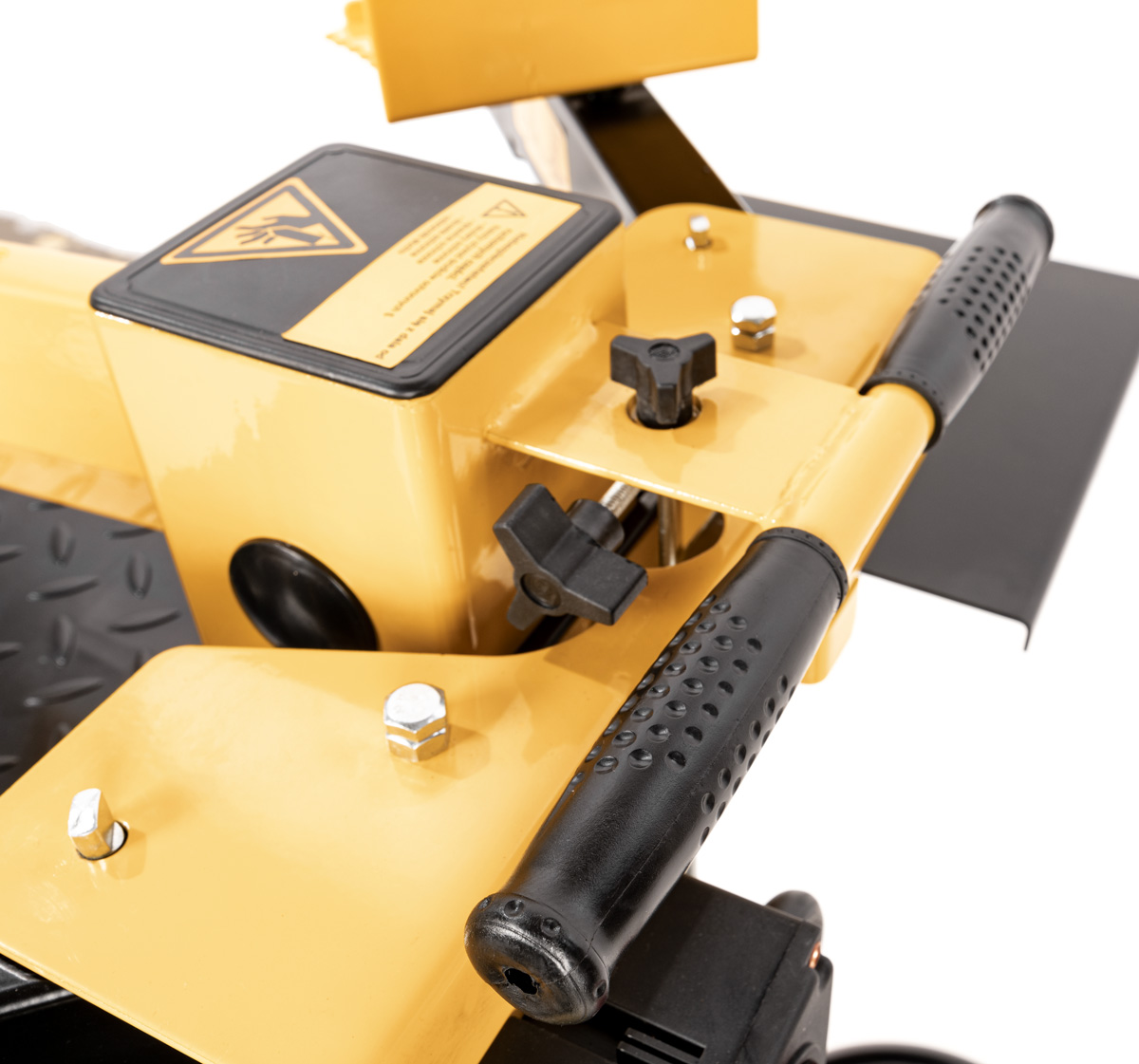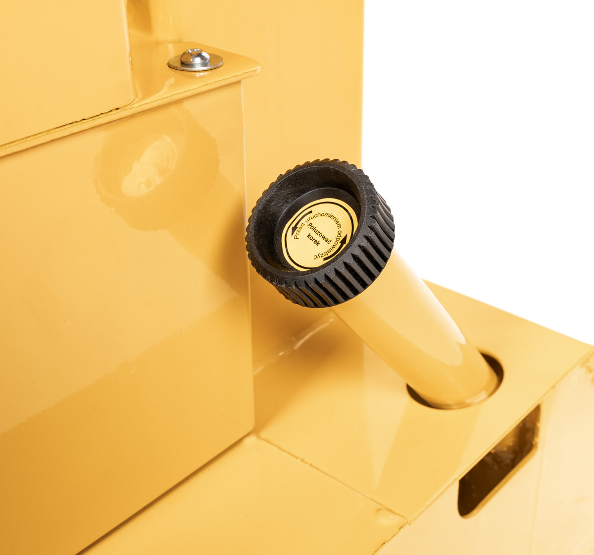 - Bezpieczeństwo pracy – dwuręczna obsługa, stabilna podstawa i zabezpieczające skrzydełka eliminują ryzyko wypadku.
