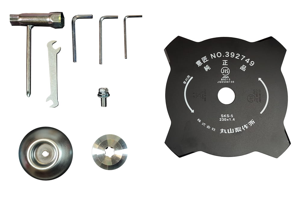 - Zestaw montażowy podkładek do tarczy tnącej również jest w komplecie z urządzeniem