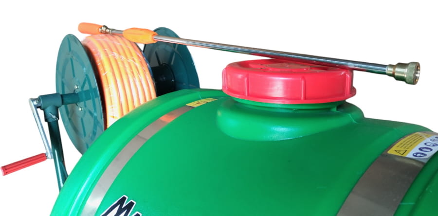 Opryskiwacz posiada regulowaną pompę ciśnieniową 10–40 bar oraz przepływ 22–32 l/min, co umożliwia dokładne i efektywne nanoszenie preparatów. Dzięki wózkowej konstrukcji urządzenie jest łatwe w transporcie, a wąż ciśnieniowy o długości 25 m i lanca 60 cm zapewniają wygodną obsługę nawet na większych powierzchniach.