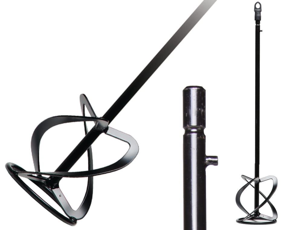 - Mieszadła do zapraw klejowych posiadają głowicę w kształcie zapewniającym ruch materiału podczas mieszania od dołu do góry. Głowice tych mieszadeł powodują, że materiał mieszany na niskiej prędkości jest unoszony środkiem mieszadła do góry, a następnie opada na dół po zewnętrznej stronie mieszadła.