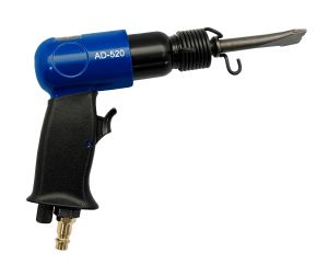 Pneumatyczne udarowe młotki i zbijaki znajdują szerokie zastosowanie w pracach budowlanych, remontowych, instalacyjnych itp. Różnorodne groty i końcówki zapewniają skuteczność przy opracowywaniu wielu rodzajów materiałów, w tym powierzchni pokrytych rdzą, farbą, zgorzeliną. Ergonomiczna konstrukcja, wygodny uchwyt i nieduży ciężar znacząco ułatwiają pracę. Zalety modelu AD-520 to solidna metalowa obudowa i wygodna gumowana rękojeść. Dużym atutem jest również wysoka liczba uderzeń udaru  - (4300 r.p.m.) przy stosunkowo niewielkim zapotrzebowaniu na sprężone powietrze - (100 l/m).   Dane techniczne: Nazwa narzędzia: AD-520 Kod towaru: MA520 Ilość uderzeń udaru: 4300 uderzeń/min Długość skoku tłoka: 43 mm Długość dłut w zestawie: 125 mm Typ gniazda na dłuto: ośmiokąt - hex Średnie zużycie powietrza: 100 l/min Maksymalne ciśnienie pracy 6,3 bar Waga: 1,1 kg