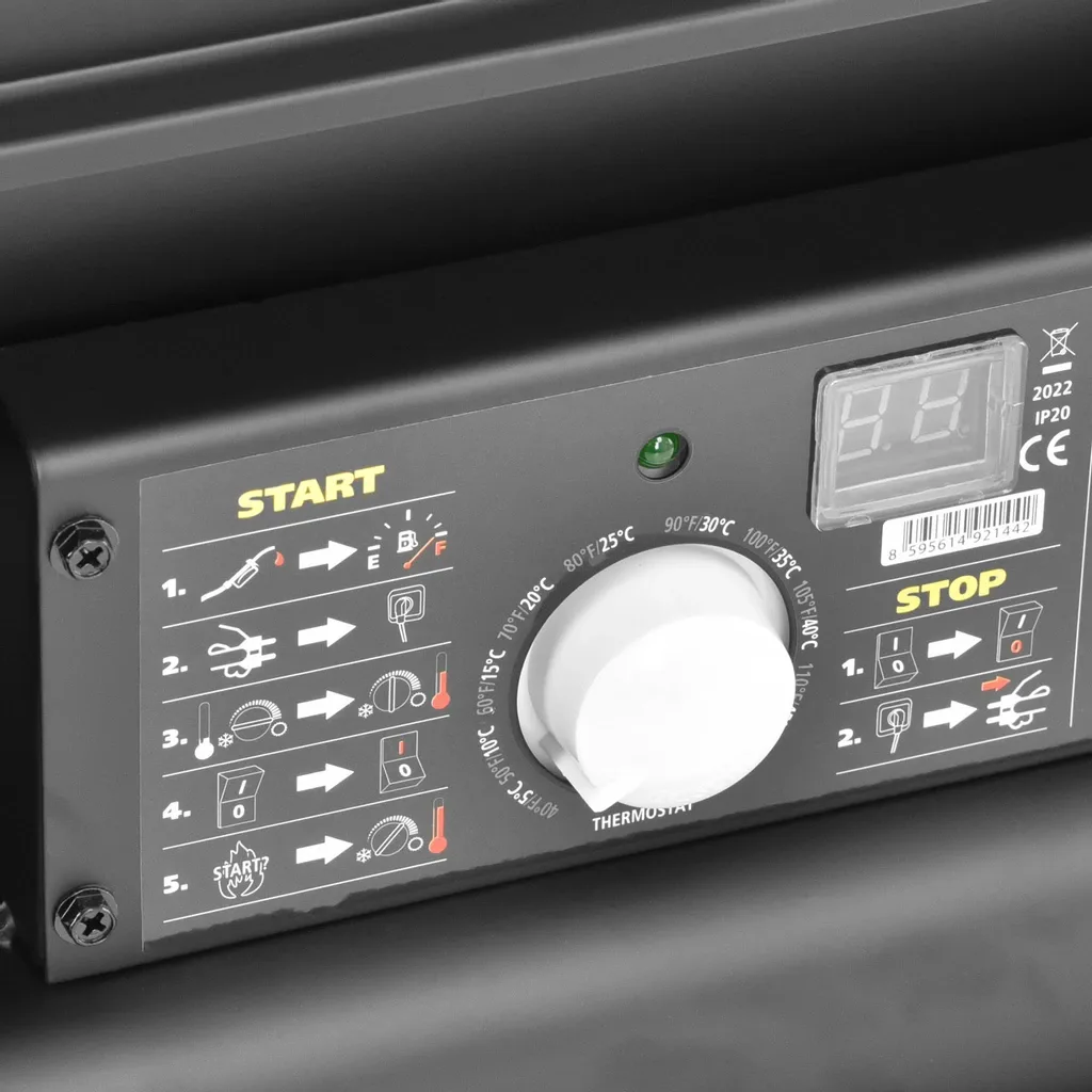 - Mobilność i wygoda – kompaktowa konstrukcja i masa 25,1 kg ułatwiają ustawienie nagrzewnicy w optymalnym miejscu.