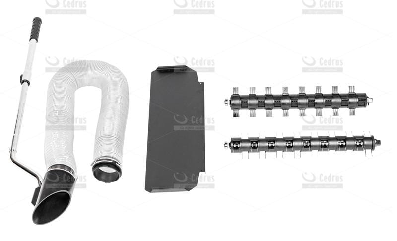 W zestawie: rura ssąca, zaślepka ssawy, wałek do zamiatania trawy, wałek do zamiatania kostki