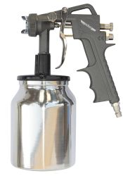 Wysokociśnieniowe pistolety lakiernicze – HP (High Pressure – z jęz. ang.), zwane także konwencjonalnymi lub tradycyjnymi, ze wszystkich grup pistoletów potrzebują najwyższego ciśnienia zasilającego pistolet. Powoduje to zmniejszone zużycie powietrza co jest zdecydowaną zaletą. Konstrukcja pistoletów tradycyjnych sprawia że takie równe, wysokie ciśnienie występuje również na dyszy powoduje to bardzo duże pylenie czyli stratę emalii lub lakieru ok 65% i zmniejszoną efektywność krycia ok 35%. Pociąga to za sobą znacznie zwiększone koszty na materiały lakiernicze, pozwala jednak na malowanie tańszym, mniej wydajnym kompresorem. Pistolet lakierniczy D-1 to wysokociśnieniowy pistolet lakierniczy włoskiej produkcji. Prosta, podstawowa budowa pistoletu ale wysoka jakość, pozwalają na osiąganie zadawalających efektów pracy. Pistolet wyposażony jest w dolny, podciśnieniowy, metalowy zbiornik o pojemności 1000 ml. Posiada boczną regulację szerokości wachlarza oraz tylną regulację ilości farby. Na wejściu zamontowana została uniwersalna złączka, pozwalająca wpiąć się we wszystkie szybkozłączki dostępne na naszym rynku. Pistolet wyposażony jest w dyszę 1,5 mm. W sprzedaży znajdują się również dysze do farb o różnej gęstości, do klejów i szpachli. DANE TECHNICZNE: Kod: 0209.0 Model: D-1 Typ pistoletu: Wysokociśnieniowy Pojemność zbiornika (ml): 1000 Średnica dyszy (mm): 1,5 Szerokość natrysku (mm): 160 - 230 Ciśnienie pracy (bar): 4 - 8 Zużycie powietrza na cykl (l/min): 140 -240 Waga (kg): 0,66 Dostępne dysze (mm): 1,0 / 1,2 / 1,5 / 1,8 / 2,0 / 2,2 / 2,5 / 3,0