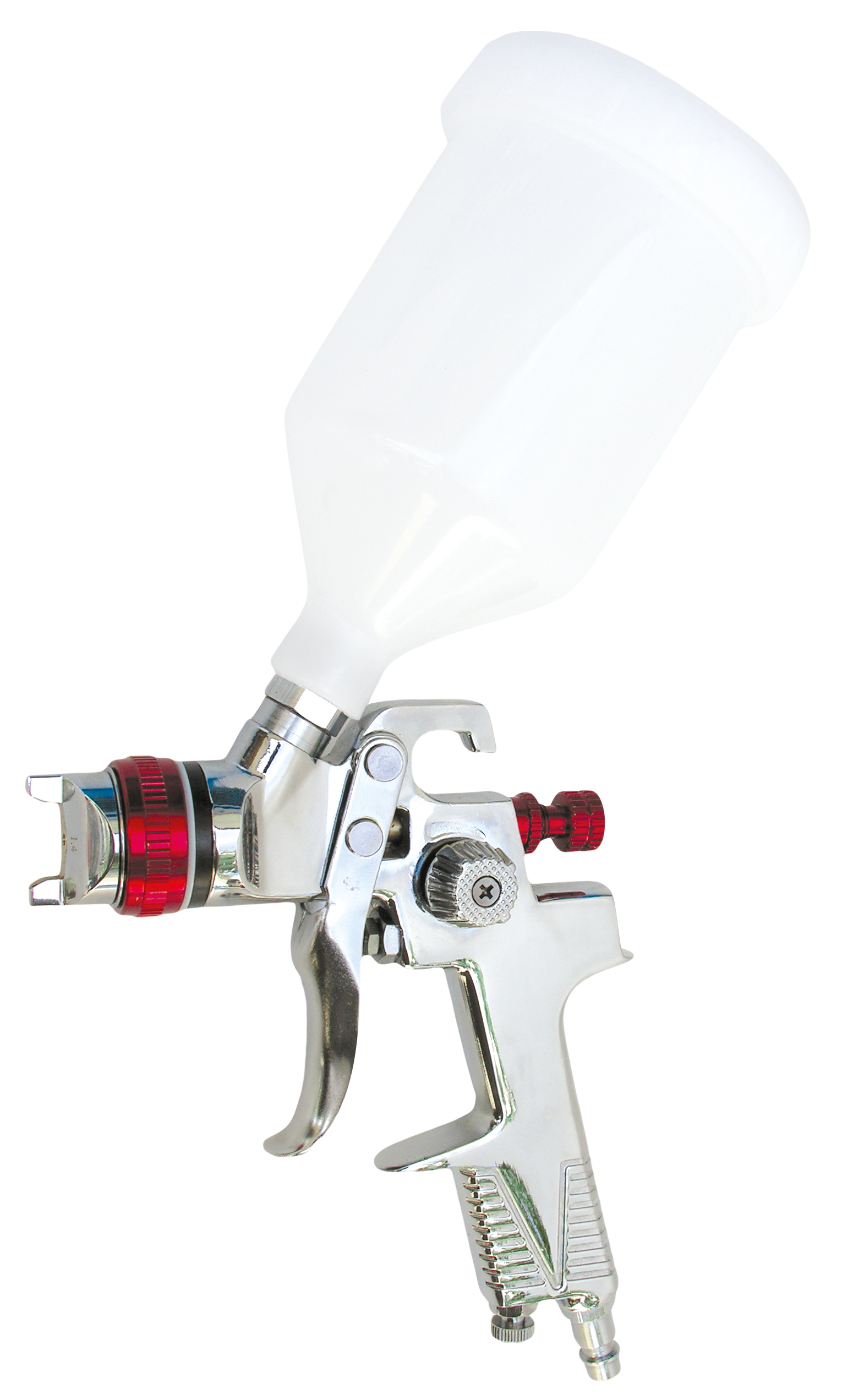 Model AD-R1017 HVLP to profesjonalny niskociśnieniowy pistolet lakierniczy. Zaawansowana konstrukcja pistoletu i dyszy. Pistolet wyposażony jest w górny, grawitacyjny, zbiornik z tworzywa o pojemności 600 ml. Posiada boczną regulację szerokości wachlarza oraz tylną regulację ilości farby oraz dolną regulację ilości powietrza. Na wejściu powietrza gwint 1/4". Pistolet ma standardowo zamontowaną dysze 1,4mm. W komplecie z pistoletem dodatkowe dysze 1,7 oraz 2,0mm. Dane techniczne: Nazwa: AD-R1017 HVLP Kod towaru: MA1017 Typ pistoletu: niskociśnieniowy (HVLP) Typ zbiornika: górny (grawitacyjny) Pojemność zbiornika: 600 ml Średnica dyszy: 1,4 mm Dostępne dysze: 1,4 / 1,7 / 2,0 mm Szerokość wachlarza: 180 - 250 mm Zużycie powietrza: 119 - 201 l/min Ciśnienie pracy 2 - 3,5 bar Waga: 0,68 kg