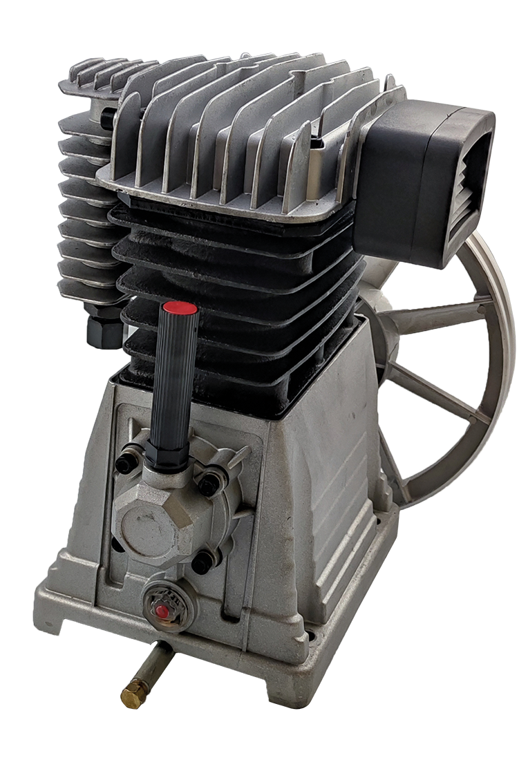 Dwucylindrowa, jednostopniowa  pompa powietrza AD2065  posiada wysoki karter oraz pojemne cylindry. Pełne żebrowanie i dodatkowa chłodnica zapewnia wysoką wydajność przy niskiej prędkości obrotowej. W pompie zastosowano duży filtr powietrza oraz łatwy spust oleju.Pompa AD2065 jest fabrycznie montowana na naszych kompresorach: AD400-100-3 230V AD400-100-3T 400V AD400-150-3T 400V AD400-200-3T 400V   DANE TECHNICZNE: Model: AD400V Kod: 3603.9 Ilość cylindrów: 2 Ilość stopni sprężania: 1 Maksymalne obroty pompy: 1200 r.pm. Wydajność teoretyczna: 375 l/min  Wydajność praktyczna: 299 l/min * Maksymalne ciśnienie pracy: 10 bar Zalecana moc silnika: 2,2 kW/ 3,0 KM Średnica koła pasowego: 267 mm Rodzaj paska klinowego: Typ A Waga: 12 kg Wymiary: 30 x 23,5 x 32,5 cm * Wydajność praktyczna to parametr określający ilość sprężonego powietrza na wyjściu z pompy przy ciśnieniu 6 bar.