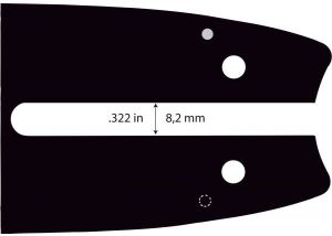 - Wykonanie: Trzy zespawane płyty metalowe, środkowa płyta wydrążona na dużej powierzchni, dzięki czemu zyskuje się dużą stabilność przy korzystnym ciężarze. Piła łańcuchowa jest przenoszona przez wymienną, nie wymagającą smarowania końcówkę gwiazdkową. Bardzo trwałe łożysko końcówki montowane za pomocą 4 nitów
