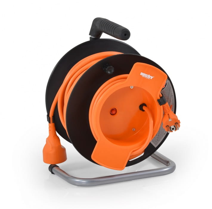 - Bęben z uchwytem na wtyczkę i gniazdo – porządek podczas pracy i łatwe przechowywanie po jej zakończeniu. Koniec z plączącym się przewodem!