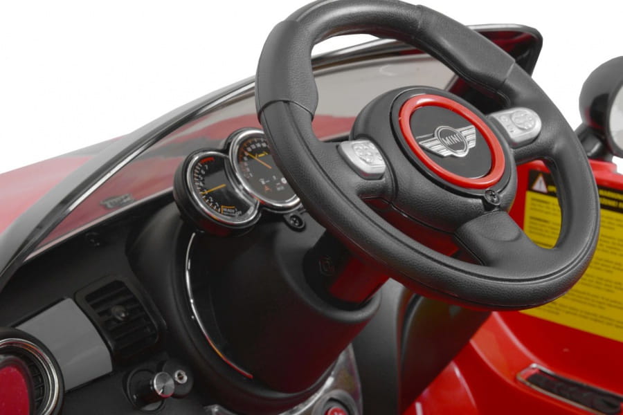Do autka jest dołączone również zdalne sterowanie z pilota. Doskonale się ono sprawdza przy mniejszych dzieciach, które nie potrafią samodzielnie kontrolować auta, a chcą korzystać z frajdy i zabawy płynącej z jazdy MINI HATCH-em.