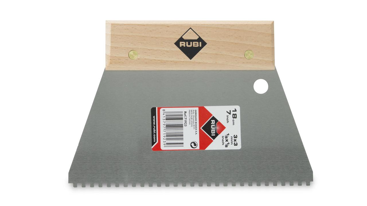 Szpachelka ząbkowana 18 cm 3x3 z drewnianym uchwytem rubi 71923
