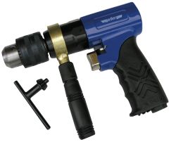 Wiertarki i wkrętaki pneumatyczne powszechnie wykorzystywane są w przemyśle stolarskim, motoryzacyjnym, technice warsztatowej, na liniach montażowych i w zakładach wytwórczych. To narzędzia do wszechstronnego zastosowania w pracach naprawczych i konserwacyjnych – są przydatne dla zawodowców i hobbystów. Cechuje je wyjątkowa jakość wykonania – są ergonomiczne i poręczne dla użytkownika, odporne na przypadkowe uszkodzenia. Posiadają znacznie prostszą i trwalszą konstrukcję od ich elektrycznych odpowiedników. Regulowany zakres prędkości i zmiana kierunku obrotów pozwala na wykorzystanie narzędzia przy pracach wymagających dużej precyzji.  Pneumatyczna wiertarka pistoletowa AD-531  w solidnej, metalowej obudowie oraz z gumowaną rękojeścią wyposażona jest w dokręcany uchwyt boczny. Odpowiednio głęboko wciśnięty przycisk spustowy zapewnia płynną regulację liczby otworów, a przełącznik umożliwia zmianę kierunku obrotów. Model AD-531 pracuje z wierłami o średnicy do 13mm. Uchwyt na wiertła dokręcany kluczykiem. DANE TECHNICZNE: Model: AD-531 Obroty na minutę (r.p.m.): 700 Max. średnica wiertła/bitu (mm): 13 Średnie zużycie powietrza: 95 *przy 25% obciążeniu Zakres ciśnienia pracy (bar): 6,3 Waga (kg): 1,6
